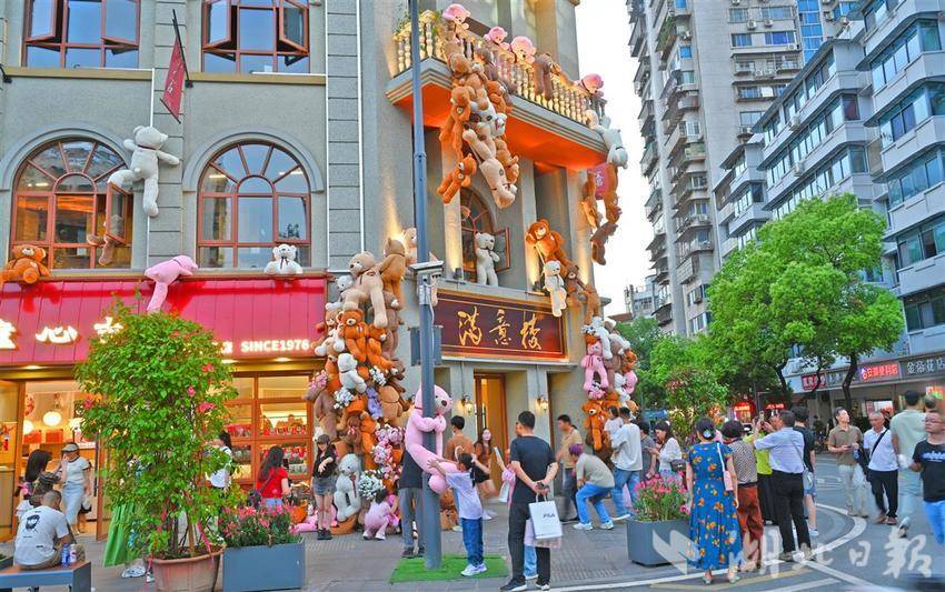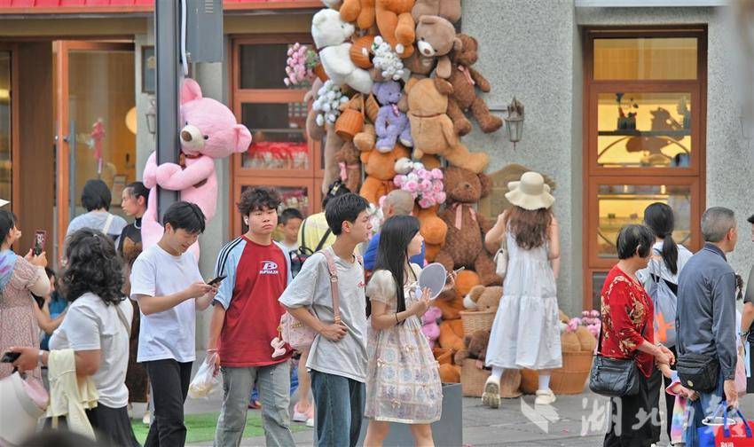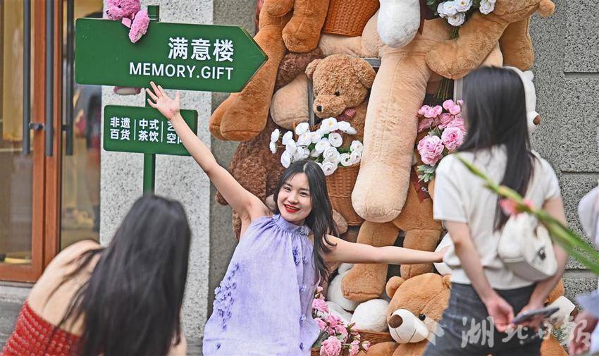 5月1日,五一假期首日,宜昌旅游市场迎来开门红,城市街头巷尾游人如织,各景区景点人气爆棚。其中,具有百年历史的二马路历史文化街区成为游客打卡热门地,呈现出一片热闹非凡的景象。当日,二马路两侧融合了欧式、中式等多种元素的历史风貌建筑在鲜花与毛绒玩具的装点下,散发着独特魅力。熙熙攘攘的人群中,既有本地市民,也有来自全国各地的游客。当天,三峡大坝旅游区、“两坝一峡”等景区景点吸引了大量游客前来感受大国重器的魅力与三峡风光的壮美。(湖北日报全媒记者刘曙松摄)