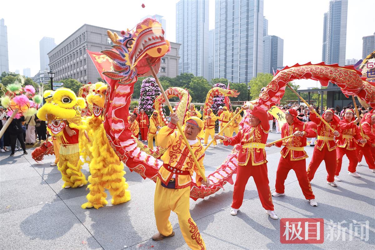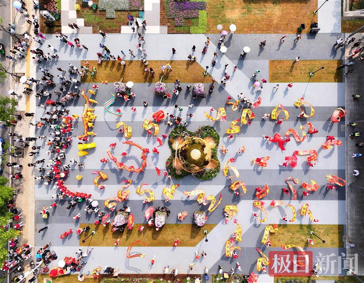 5月5日,“五一”假期最后一天,在武汉市沙湖公园举行的世界花园大会现场,武汉市龙飞凤舞健身舞龙俱乐部的健身爱好者们为市民游客上演了一场精彩纷呈的舞狮舞龙表演。活动现场,高龙昂首腾飞、滚龙翻江倒海,更有高竿凤凰惊艳亮相。市民游客和武汉客运段乘务人员也热情参与其中,与大家共同感受传统民俗的独特魅力。