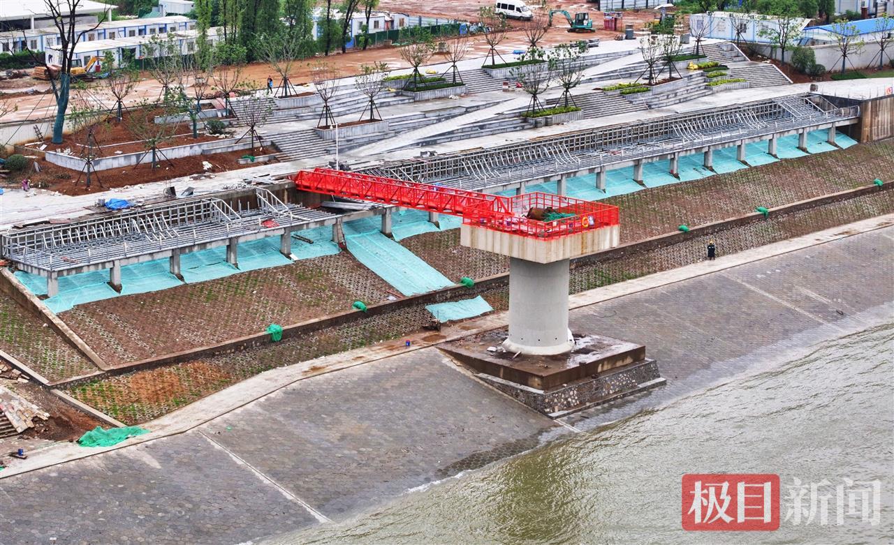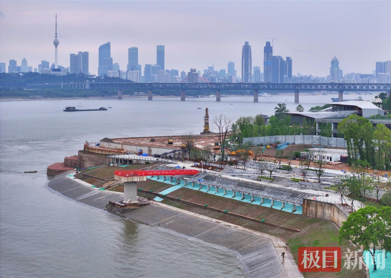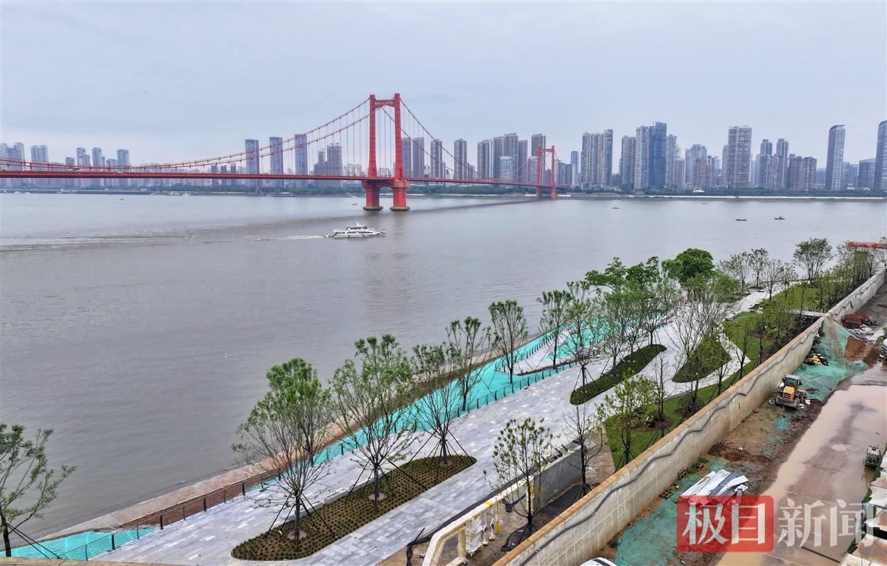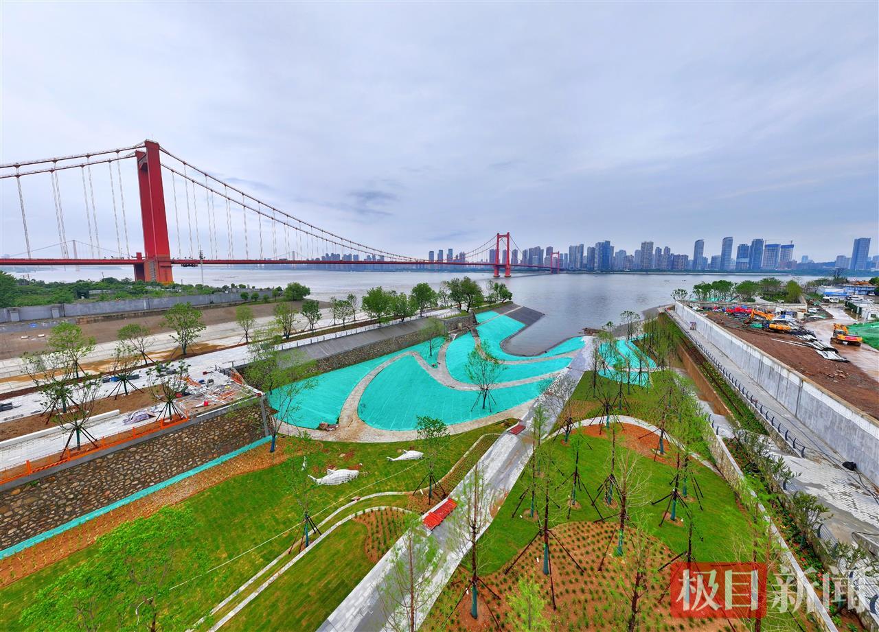 近日,武汉市武昌区武船片区堤防改造及江滩环境整治工程提前45天实现1045.5米防洪墙全线合龙。5月15日,记者在项目现场看到,新建的悬臂式钢筋混凝土结构防洪墙及江滩景观绿化已成形。