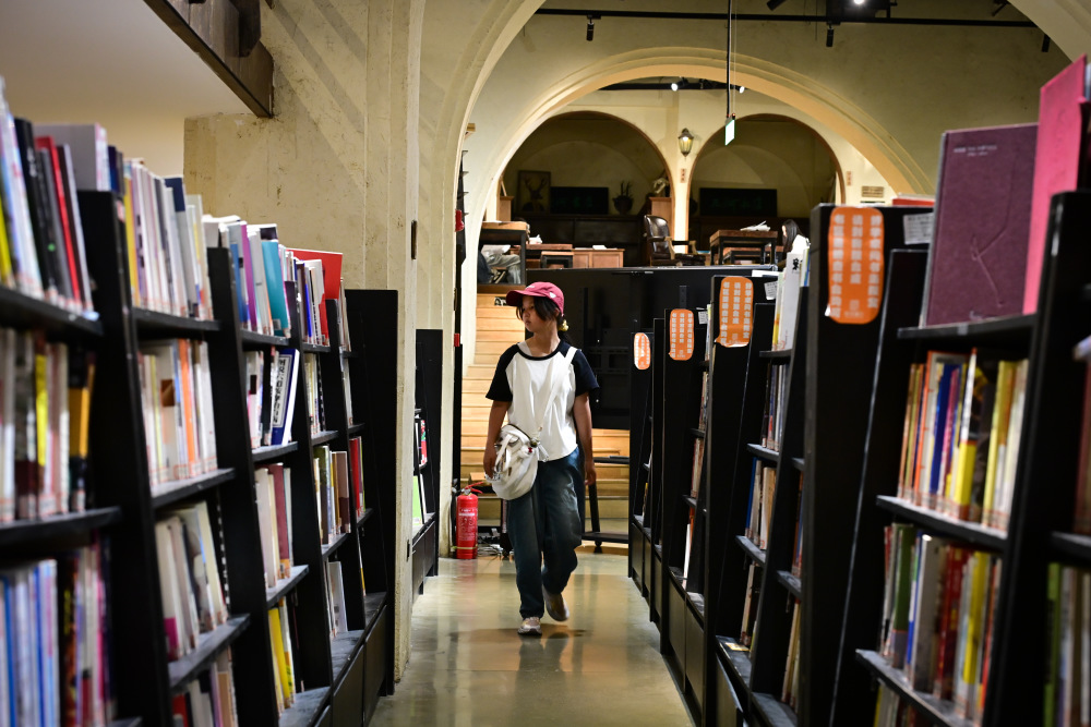 5月25日,青海省西宁市几何书店内,一名市民走过书架。新华社记者 齐芷玥 摄