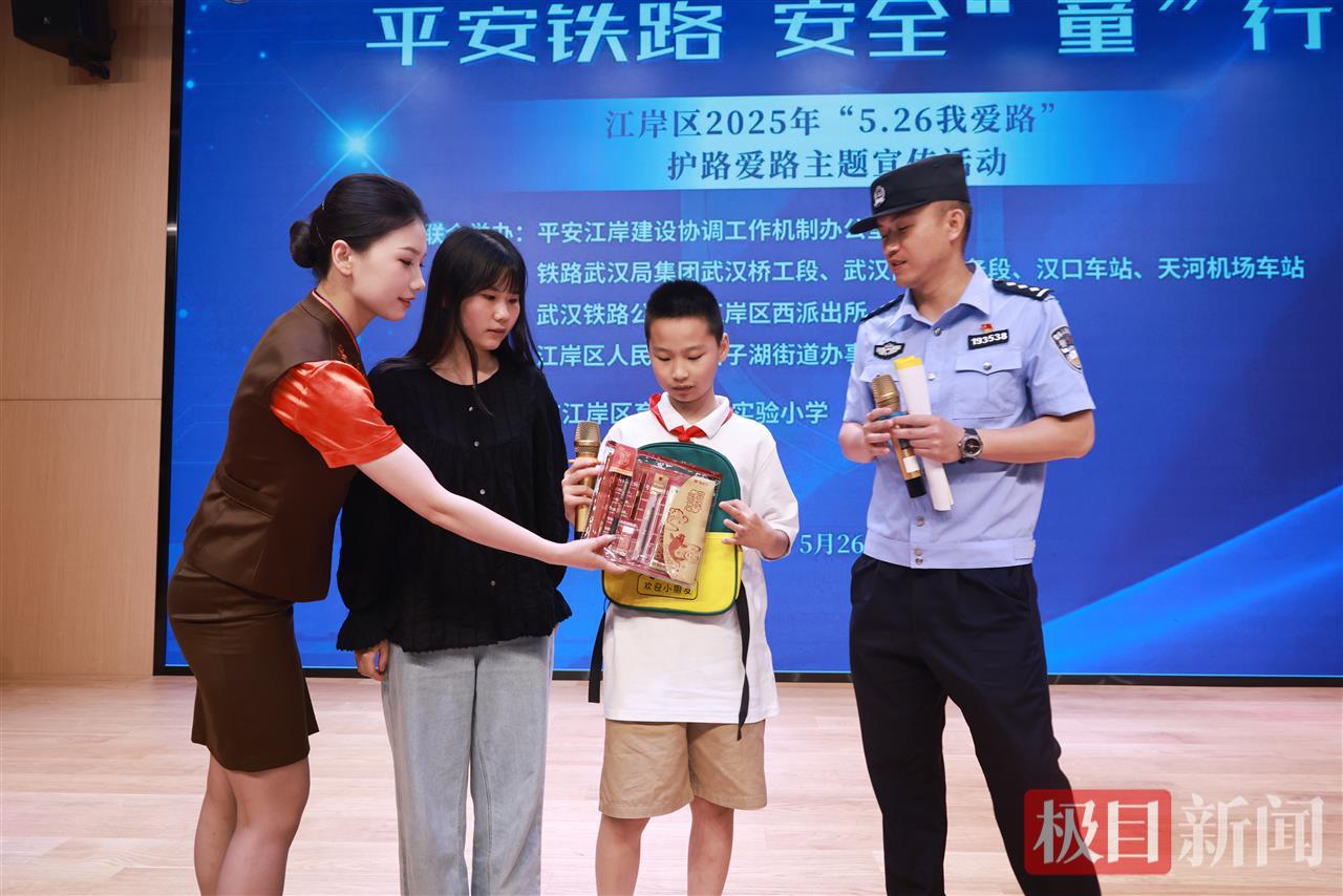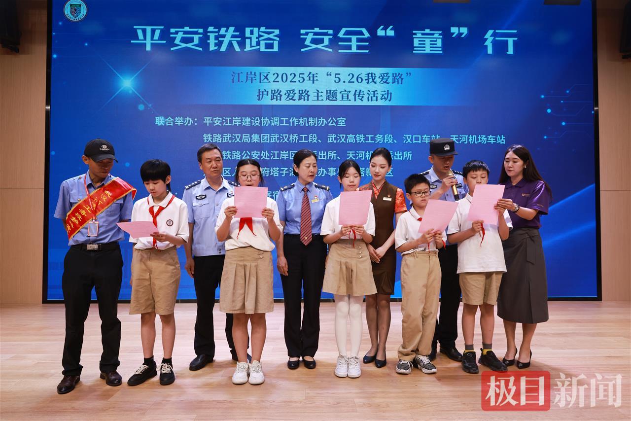 5月26日,正值第13个“全国爱路护路日”,为进一步提升小学生安全意识,武汉铁路警方联合武汉客运段、武汉桥工段、武汉高铁工务段、汉口车站以“‘5·26我爱路’全国铁路爱路护路宣传日”为契机,走进武汉市江岸区育才寄宿实验小学天马校区,宣传铁路安全有关法律法规和安全常识。