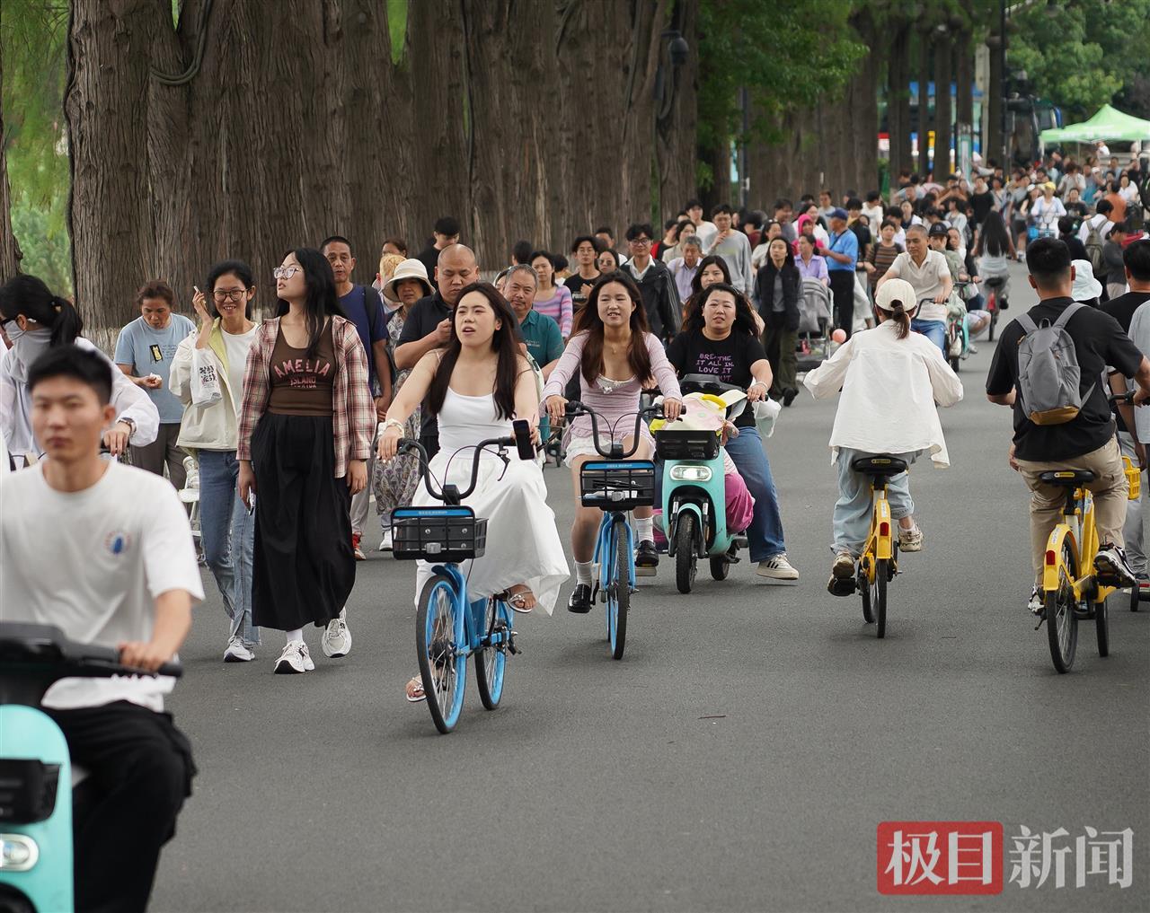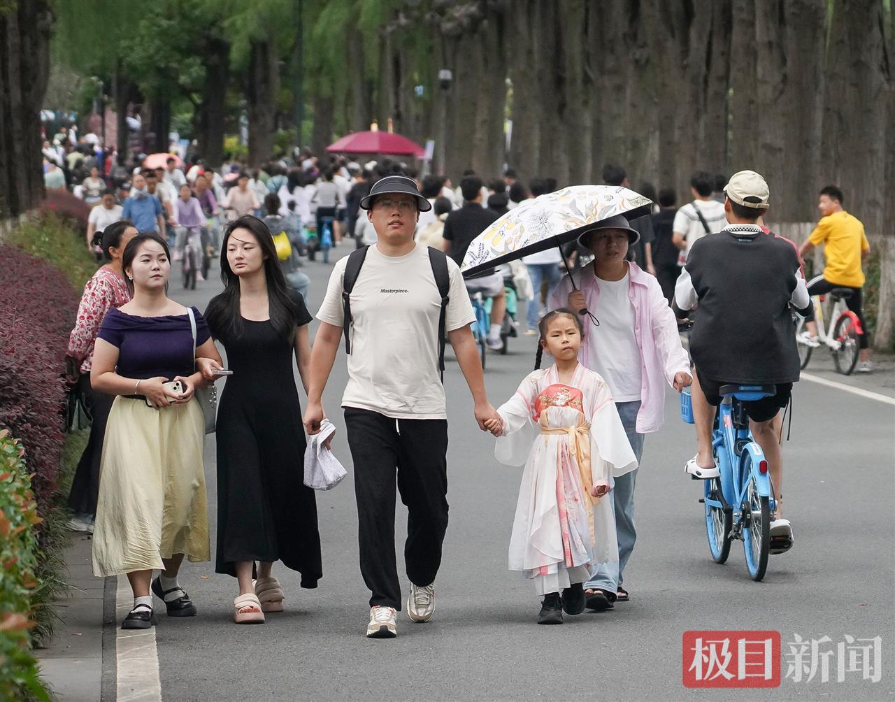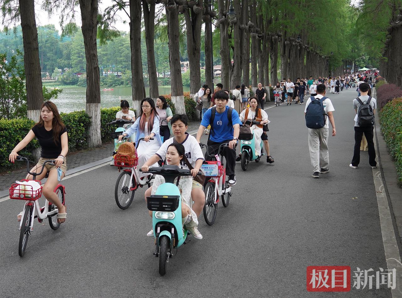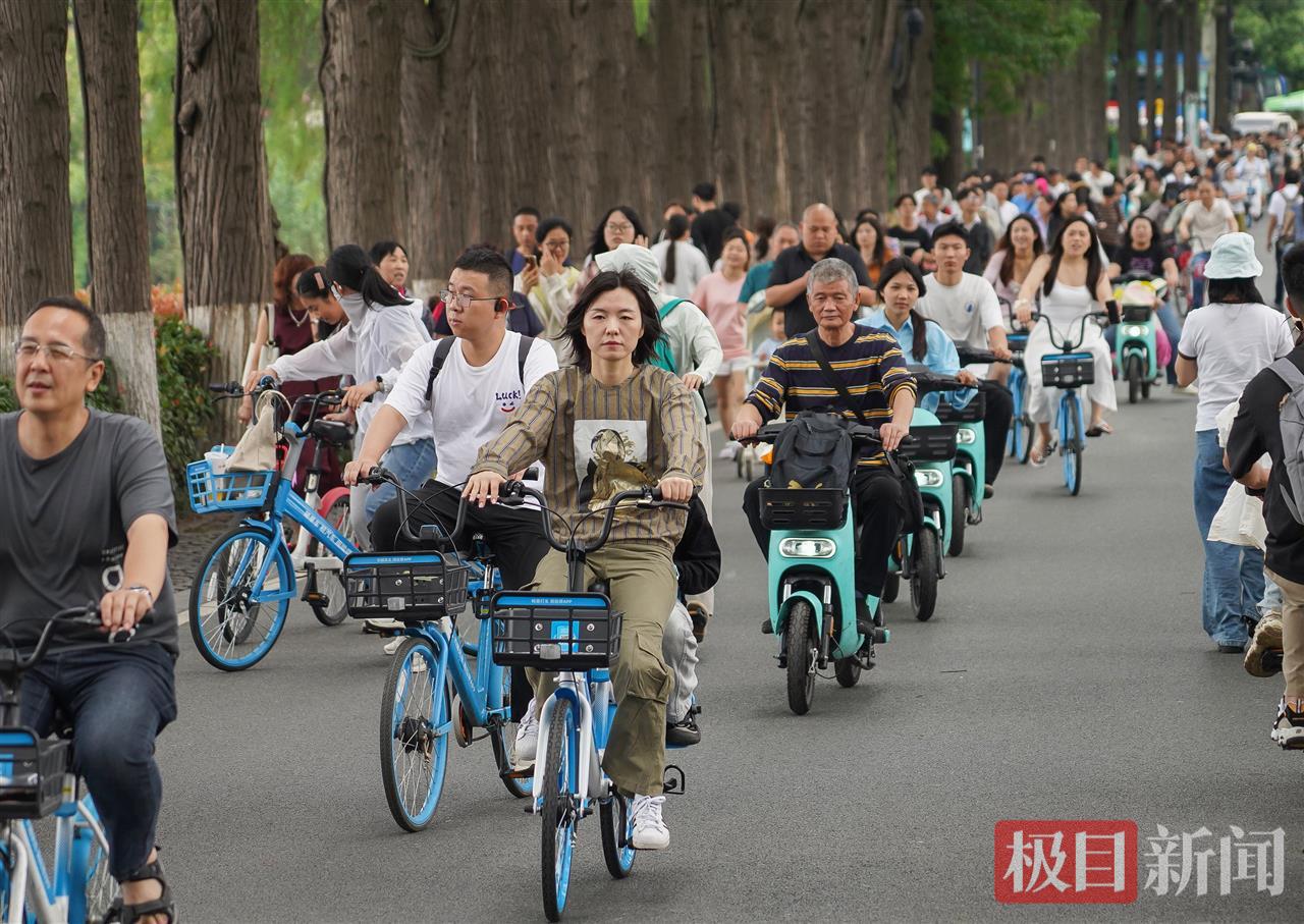 6月2日,端午假期最后一天,连日的大雨终于放晴,阳光洒满大地,空气清新宜人。东湖绿道上,游客如潮水般涌来,形成一幅热闹的假日画卷。绿树成荫的小径上,人们悠闲漫步,骑行者穿梭而过,车轮轻快地滚动,带起阵阵微风;湖面上,小船轻轻泛舟,桨声与水波交织,倒映着蓝天白云。整个绿道洋溢着欢声笑语,游客们沉浸在假期的氛围中,尽情体验着自然的馈赠。