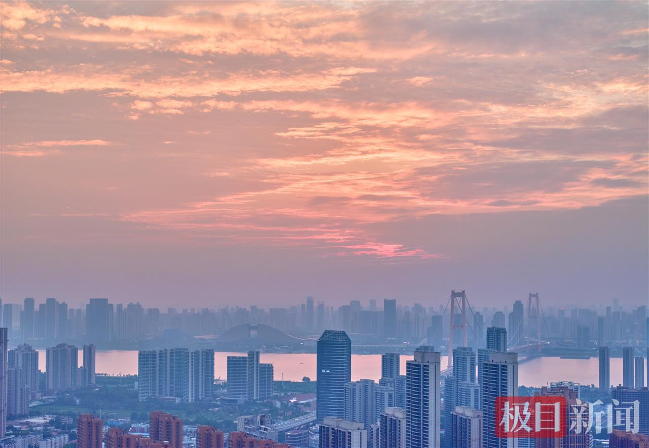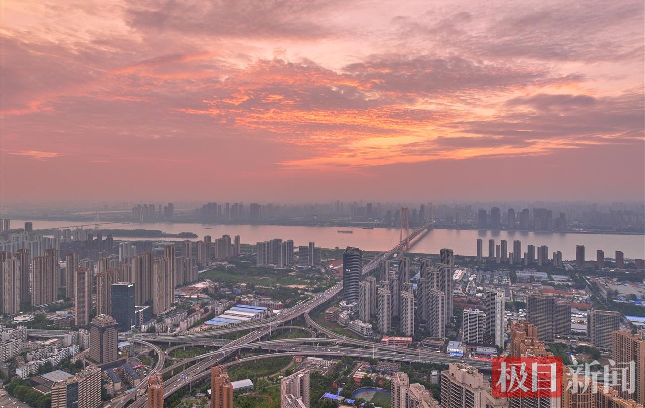6月2日傍晚,经历连日降雨,江城武汉上空出现绚烂晚霞。金灿灿的夕阳浸染城市天际线,光芒四射,构成一幅“治愈系”的醉美画卷,吸引不少市民驻足拍摄,刷屏朋友圈。