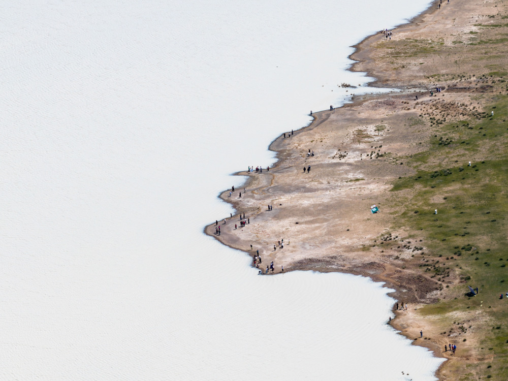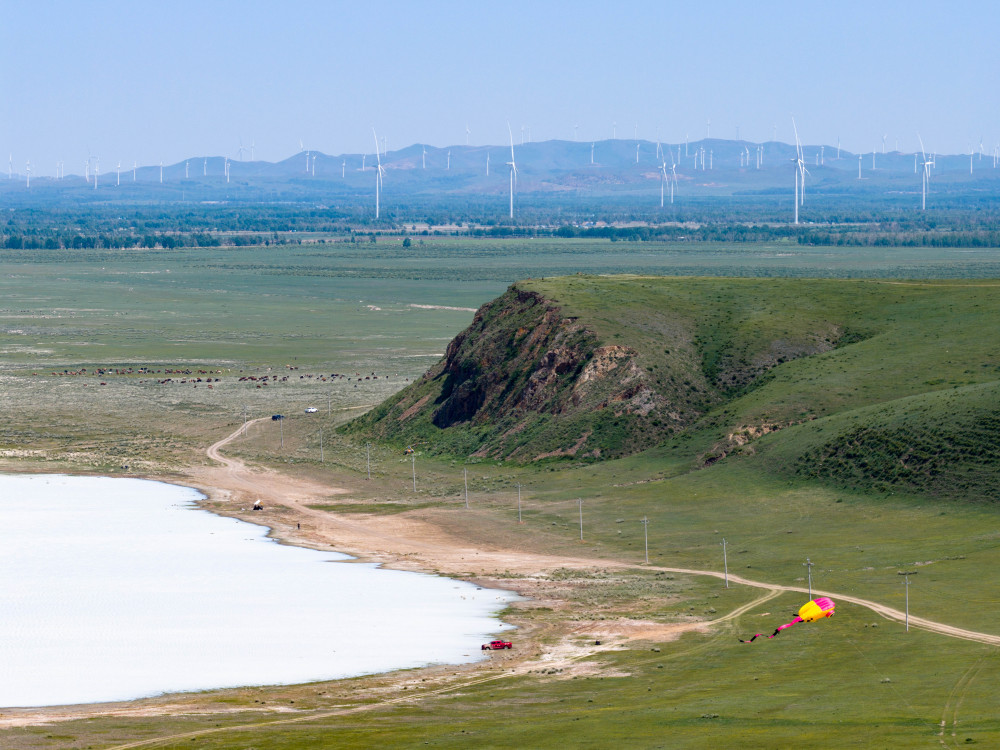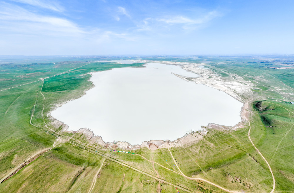 夏日,位于内蒙古锡林郭勒盟太仆寺旗的白音查干湖景色独特,吸引游客前来观赏游玩。白音查干湖因碳酸钙等矿物颗粒悬浮,湖水呈现出白色,被称为“牛奶湖”。