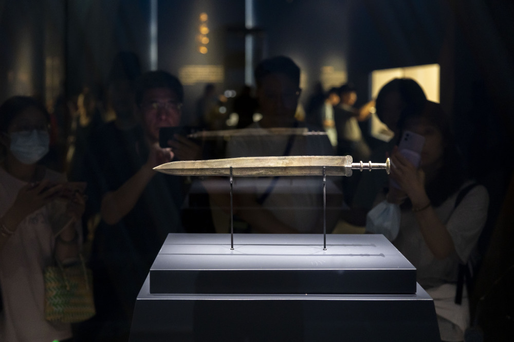 6月15日,在上海市闵行区博物馆,观众参观“越王者旨于赐”剑。新华社记者 王翔 摄