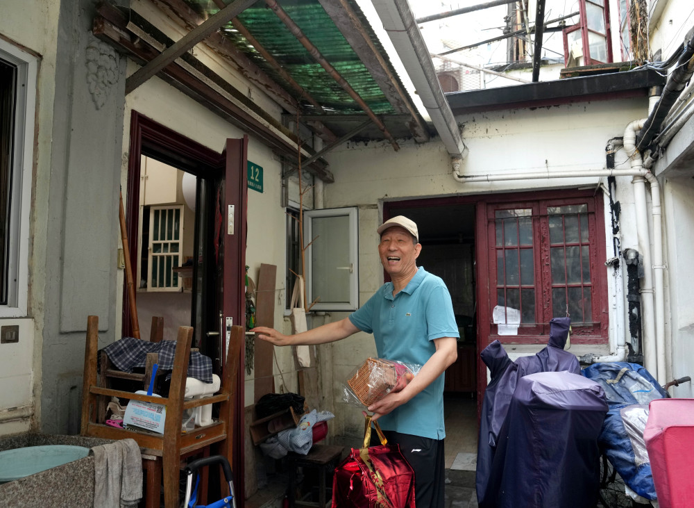 6月16日,搬迁居民韩国友在位于西康路894弄的家门口。新华社记者 刘颖 摄
