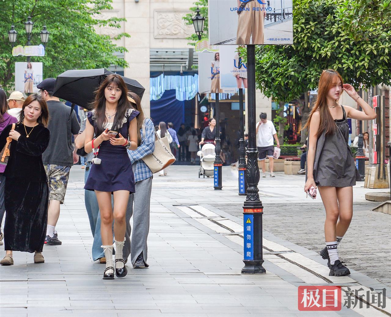 武昌汉街沿街店铺送出的空调凉风,减弱了人们的暑热感