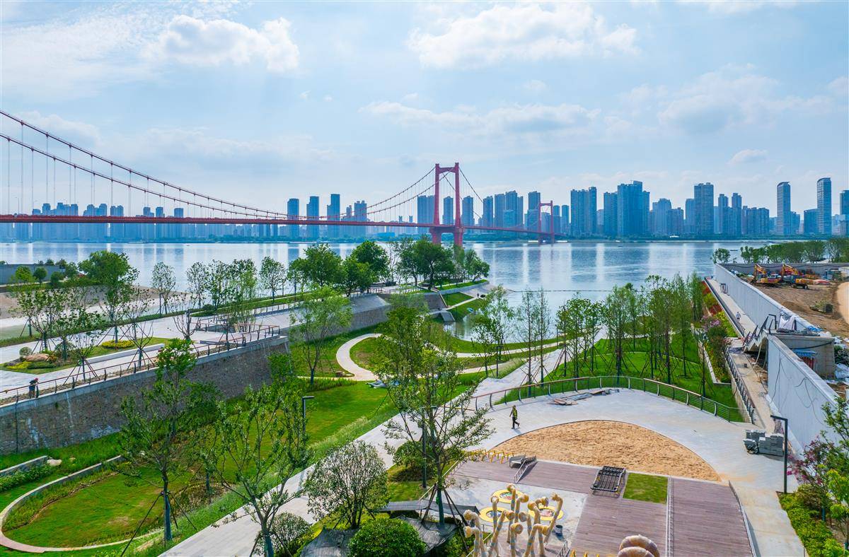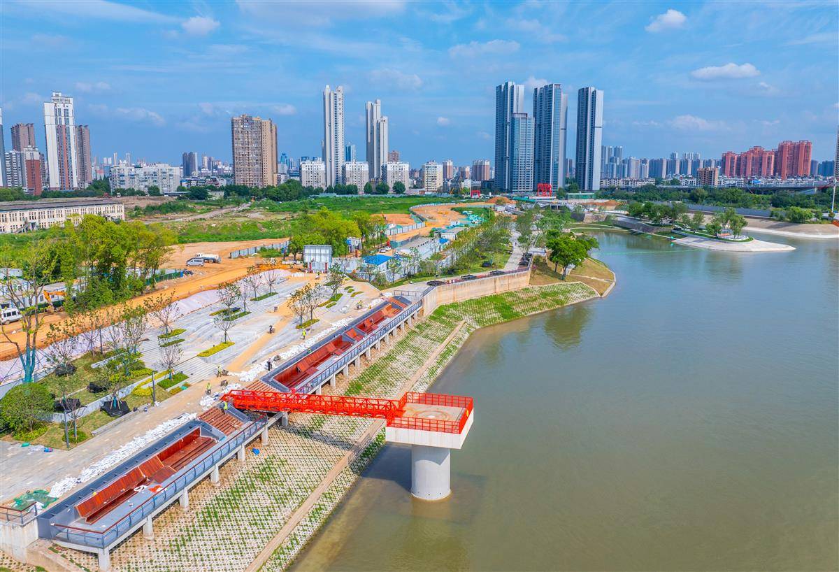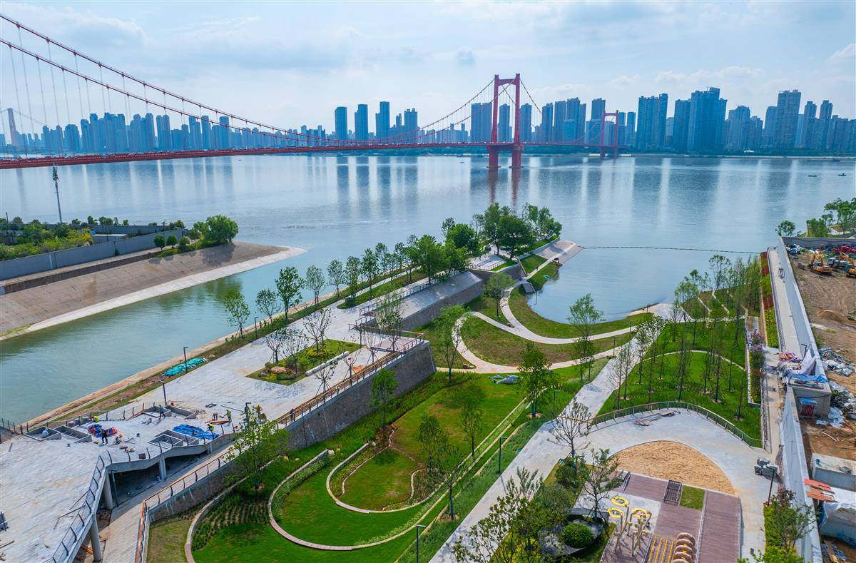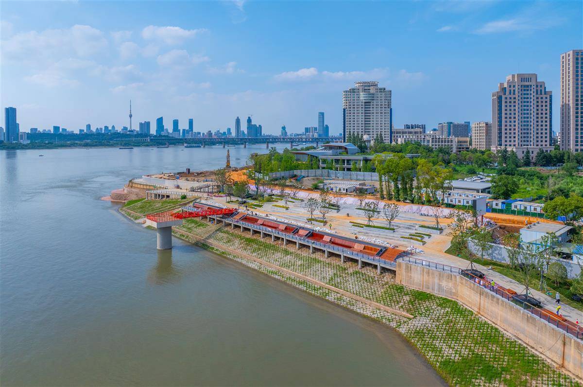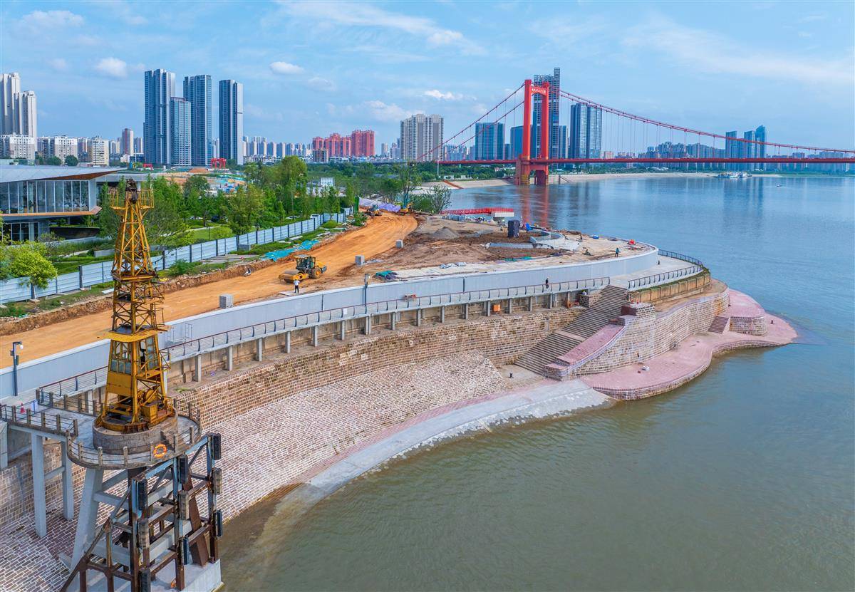 6月15日,武汉武船片堤防改造及江滩环境整治工程加紧进行收尾工作。该工程起于解放闸,止于张之洞路,用地面积5.6万平方米,主要建设内容包括堤防改造、景观绿化、岸坡加固等。项目建成后将贯通武汉百里长江生态廊道的“最后一公里”。(湖北日报全媒记者 薛婷 摄)
