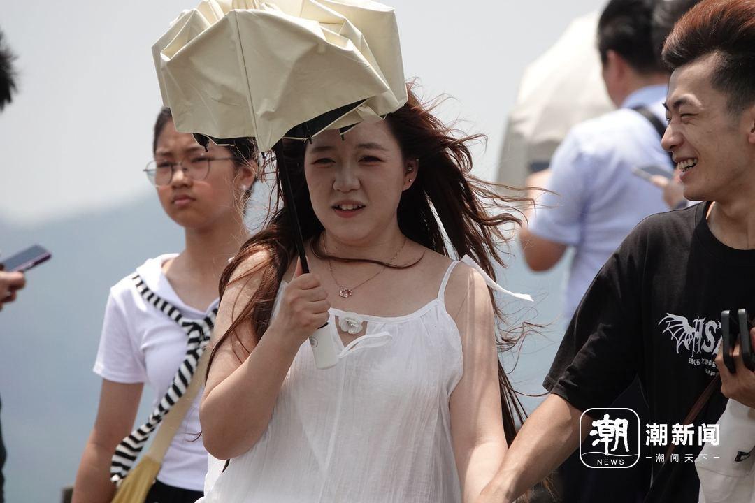 一阵大风来袭,游客的衣服随风起舞。记者 杨晓轩 摄