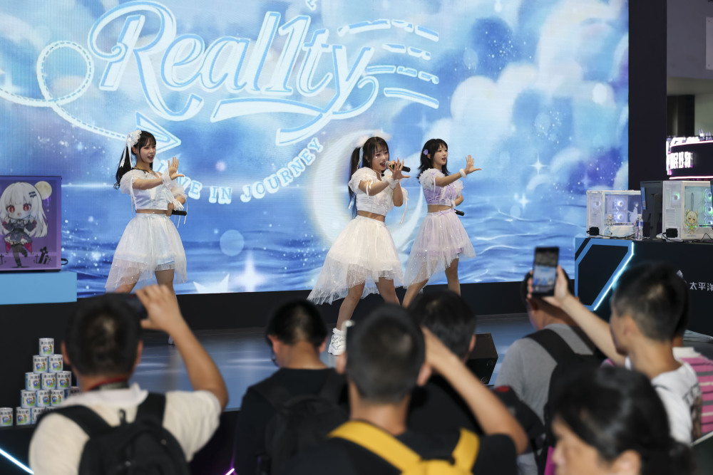 8月1日,人们在第二十二届中国国际数码互动娱乐展览会现场观看歌舞表演。新华社记者 王翔 摄