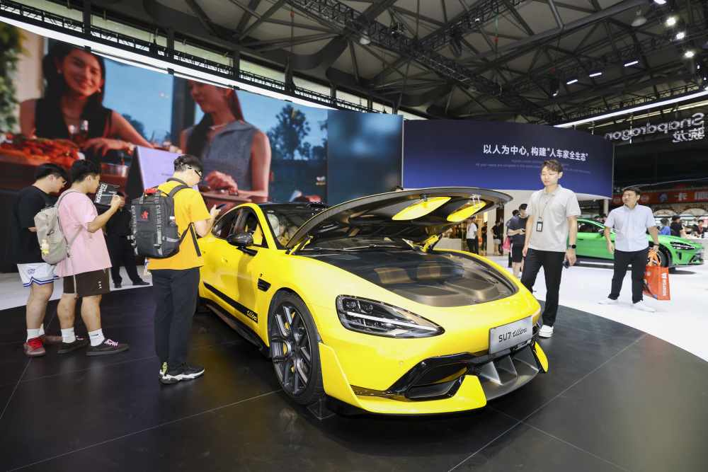 8月1日,观众在小米展位参观展车。新华社记者 王翔 摄