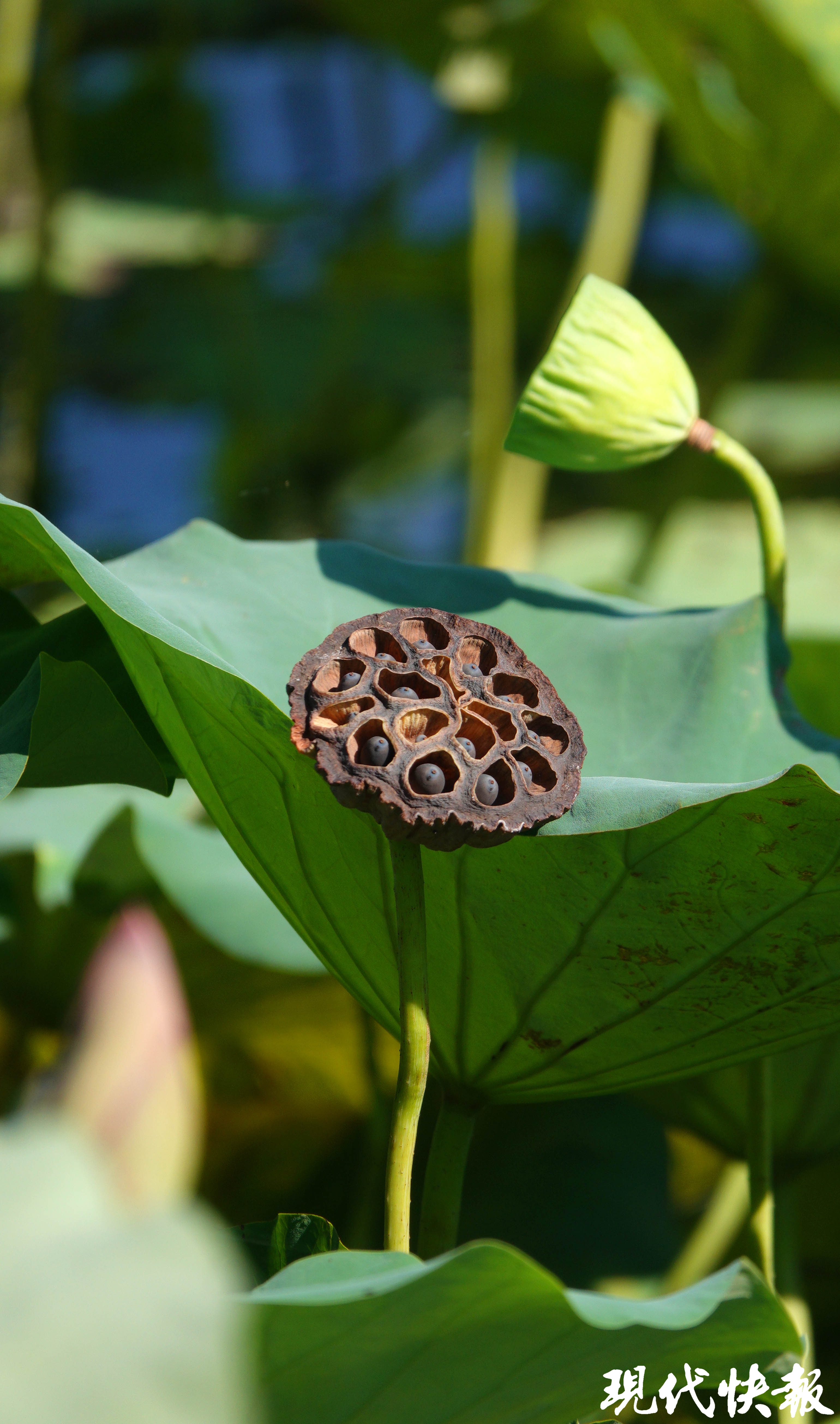 碧水之上,不只有荷叶和荷花相配。荷花在夏日里开花,也在夏日里结出莲蓬。