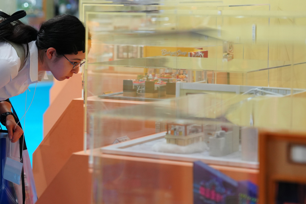 8月28日,一名参观者在日本东京玩具展上参观展出的玩具。新华社记者 贾浩成 摄