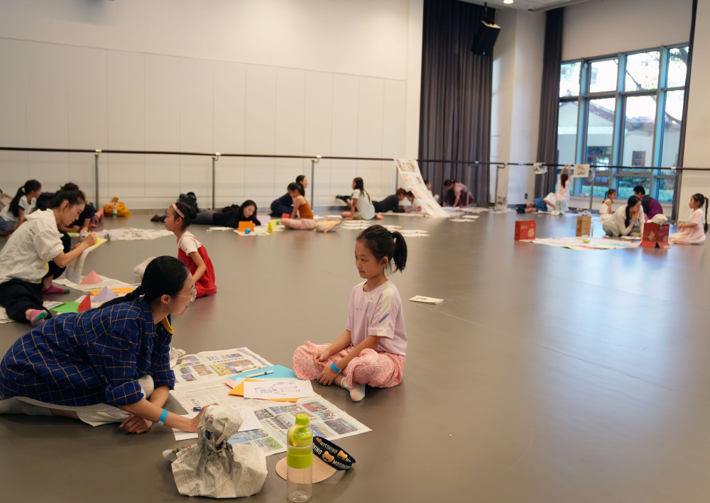 8月28日,在“为孩子编舞”工作坊现场,青年舞者通过与孩子们交流,搜集创作素材,激发创作灵感。新华社记者 刘颖 摄