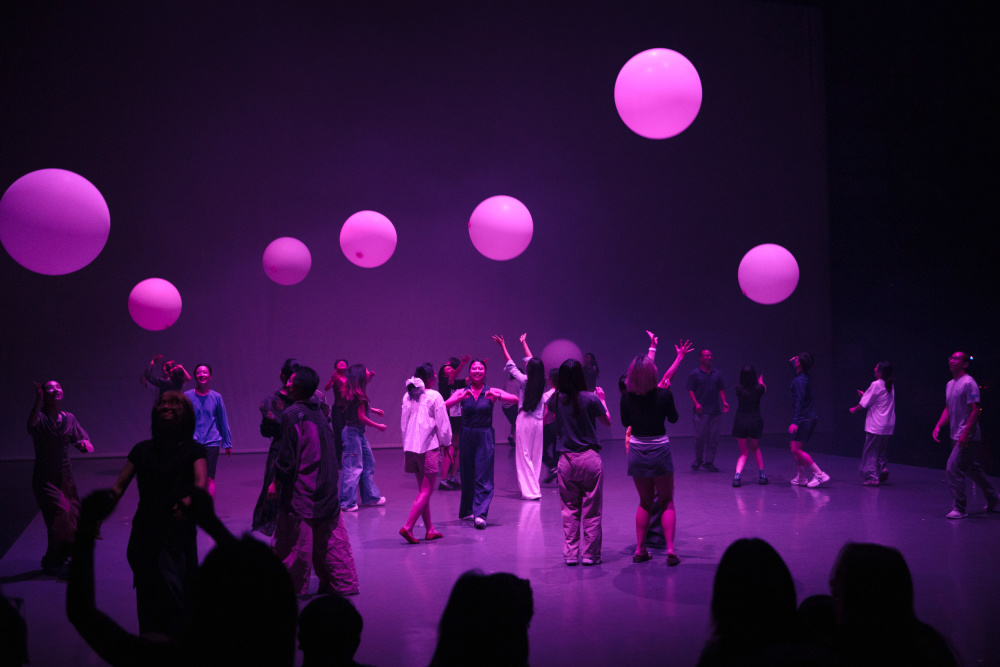 这是8月27日晚在上海国际舞蹈中心实验剧场,观众们步入舞台参与沉浸式互动体验。新华社记者 刘颖 摄