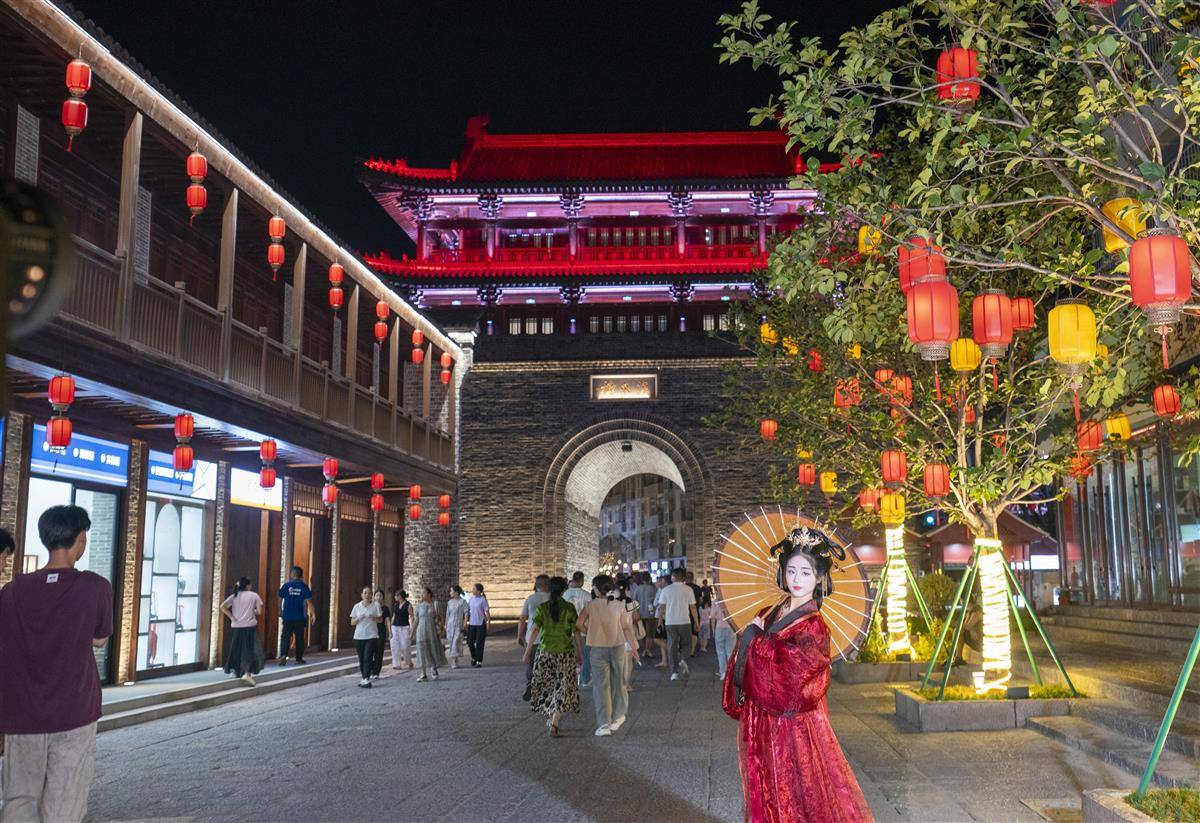 今年元旦开街的草甸子历史文化街区,与水上夜游项目形成有效互补。开街首月,草甸子街接待游客超87.9万人次,带动周边餐饮、文创消费增长30%。今年1—8月,已累计接待游客294.08万人次。(湖北日报全媒记者 魏铼 摄)