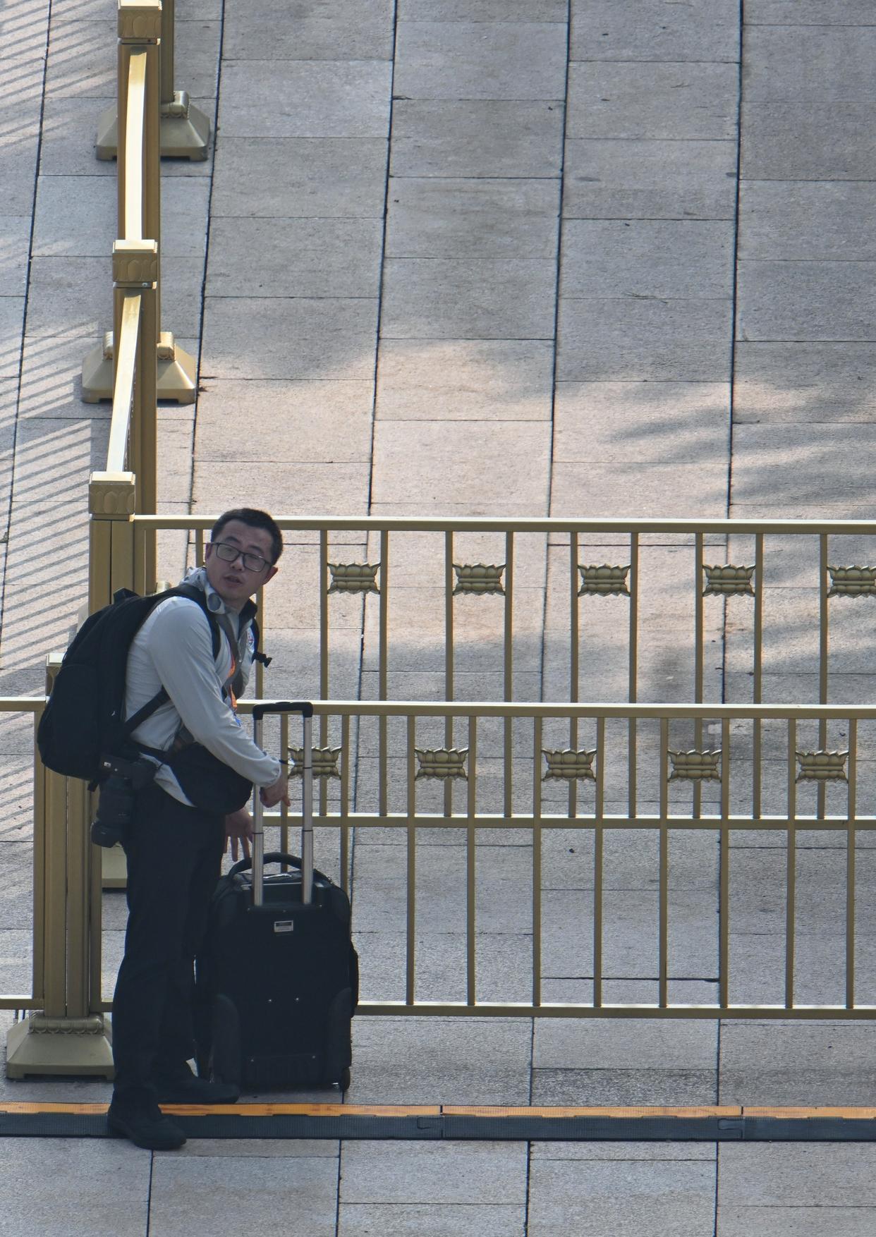新华社记者江文耀:“我当时准备换点位,询问是否能把摄影器材箱放在这里。朋友说我看起来像在北京站找路的迷茫游客。” 这是我第三次参加阅兵报道,这次我负责拍摄鸣礼炮和放飞和平鸽与气球。