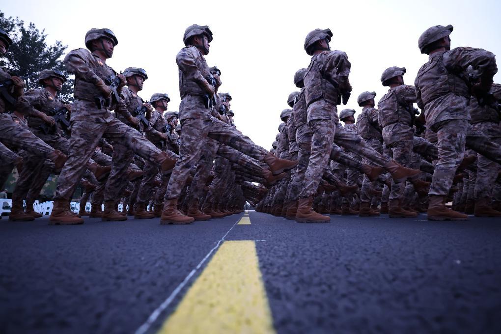 我放慢了脚步,举起相机。眼前的一切,是阅兵正式开始后再难重现的场景。这里是各个徒步方阵的集结区。当他们移步至检阅场时,将与我相隔甚远。而此刻,他们就在我身边,近在咫尺。