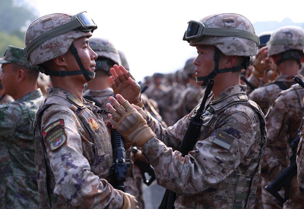紧张训练间隙,士兵们偶尔席地而坐,眉眼间流露出难得的轻松。女民兵们对着小镜子认真补妆,整理帽檐时相视而笑,明媚又自信。有些战士见我走近,羞涩地侧过脸避开镜头;有些战士则爽朗地招呼战友,大方地面对镜头竖起大拇指;还有战士悄声问我,能否为他留下一张纪念影像。我自然欣然应允。
