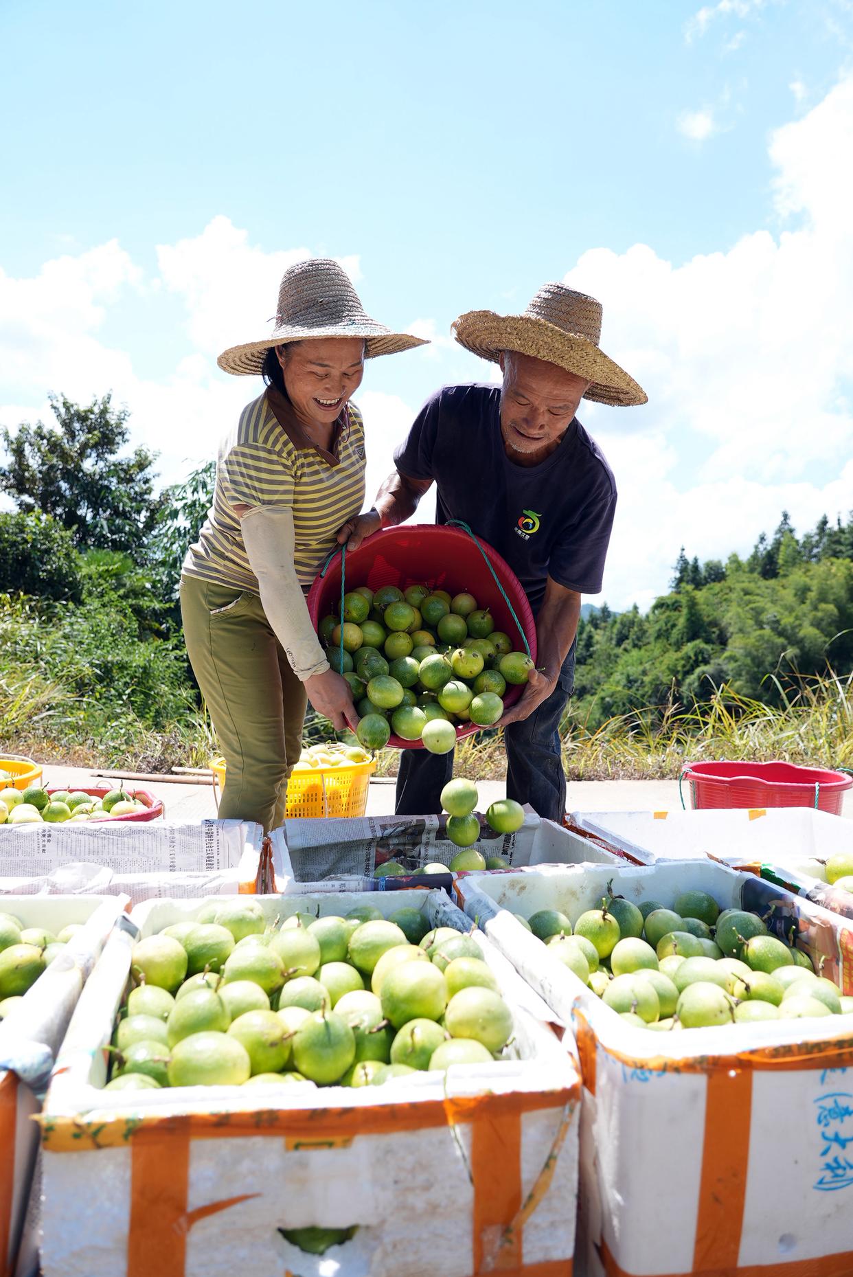 9月22日,在广西龙胜各族自治县瓢里镇平岭村,村民将刚采摘的百香果装盒准备出售。新华社发(韦吉阳摄)