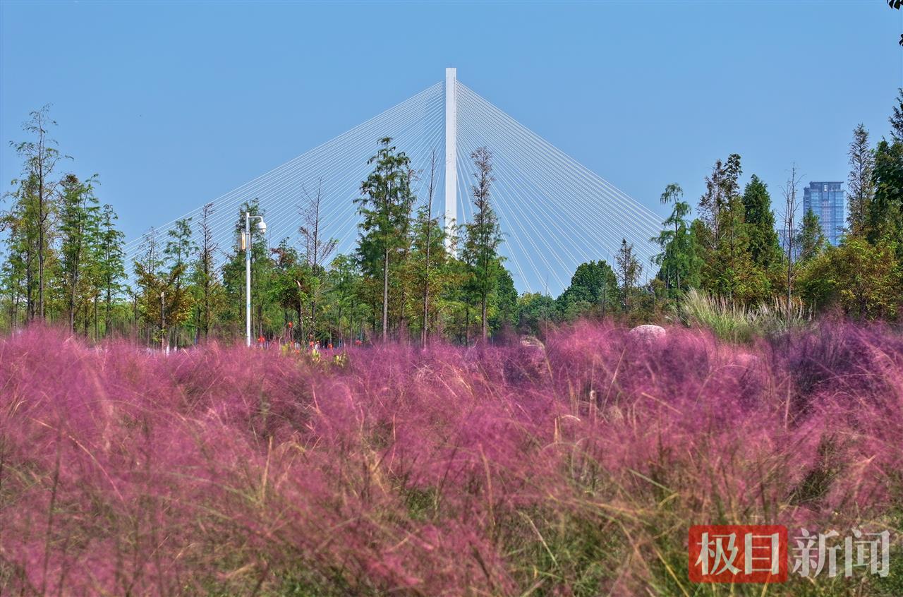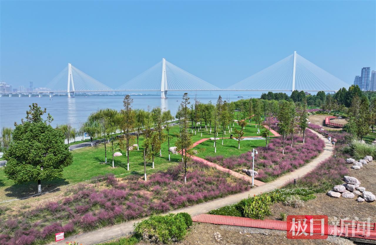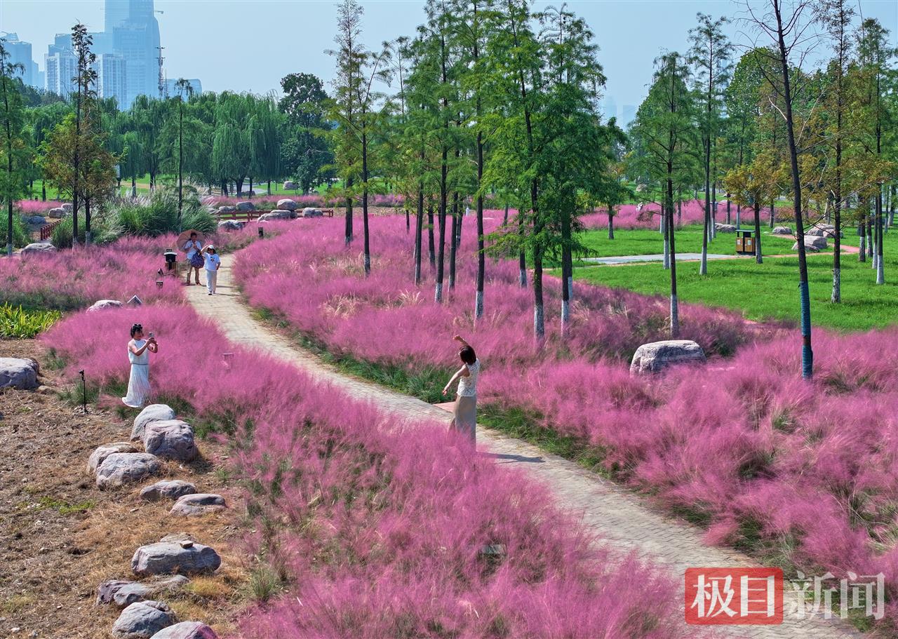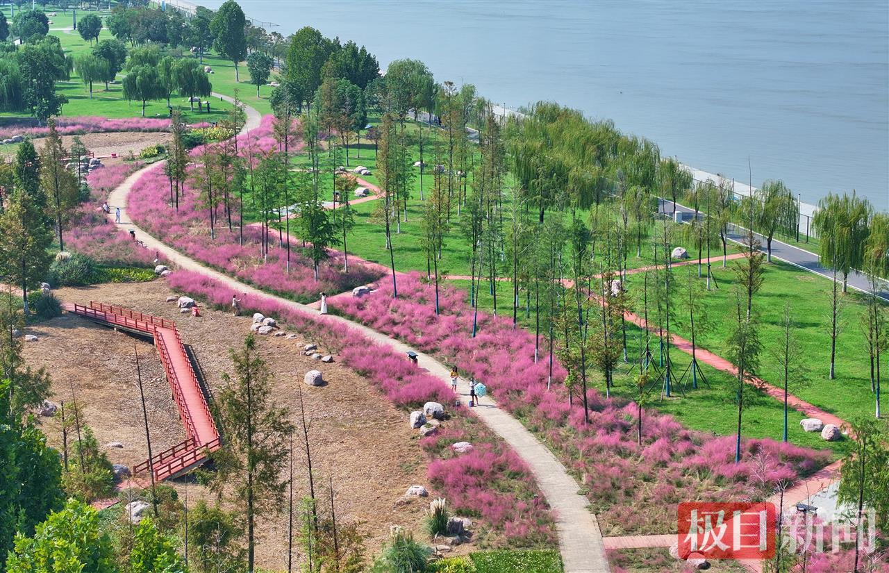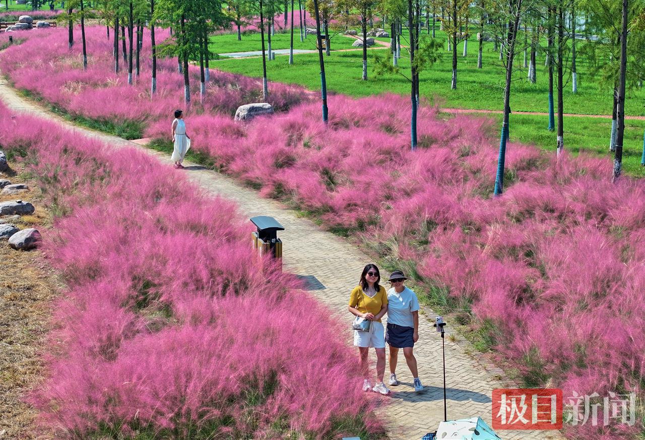 10月9日,武昌江滩五期天使广场附近大片粉黛乱子草进入盛花期,绽放成一望无际的粉色花海。不少市民游客特意前来打卡拍照,人们置身自带柔光效果的粉色“云烟”中,在镜头前定格秋日倩影。