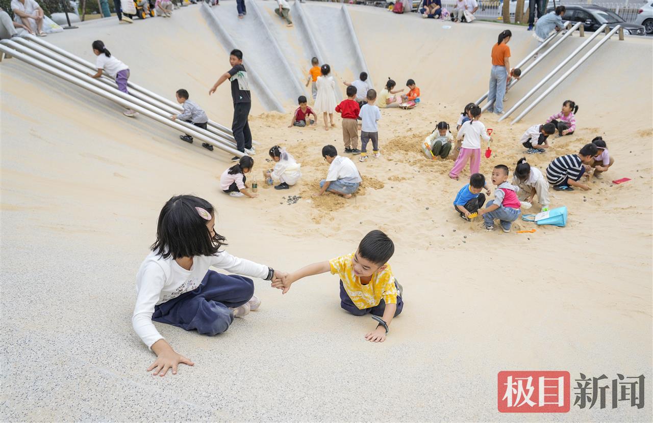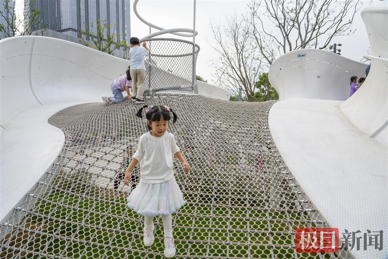 武昌新建成、投入使用的滨江徐家棚口袋公园,成了孩子们撒欢的儿童乐园。10月12日,孩子们在家长的看护下,在跳跳云上尽情蹦跳、在白色的攀爬网上努力爬行、还与小羊和小鹿亲近。据悉,这个1.3万㎡的旷野公园与大型商业体相连,形成带“公园”的商圈,它还临近周边10多个居民小区、服务居民,该口袋公园“兜”着当地居民家门口的大幸福。