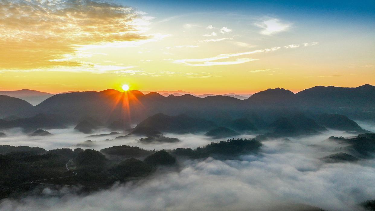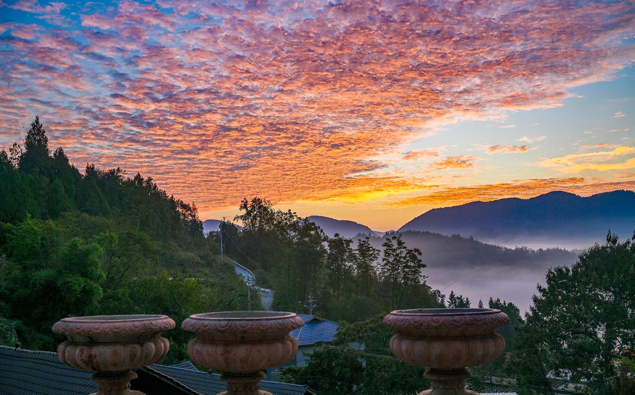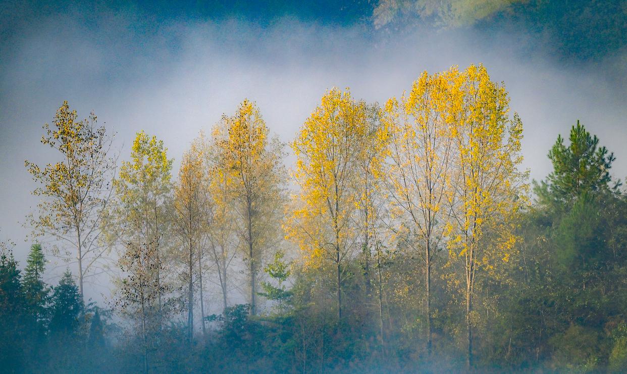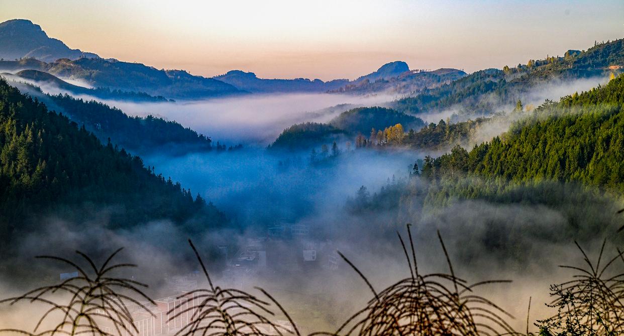 近日,在重庆市酉阳土家族苗族自治县丁市镇大龙村,晨雾如轻纱般笼罩村落。