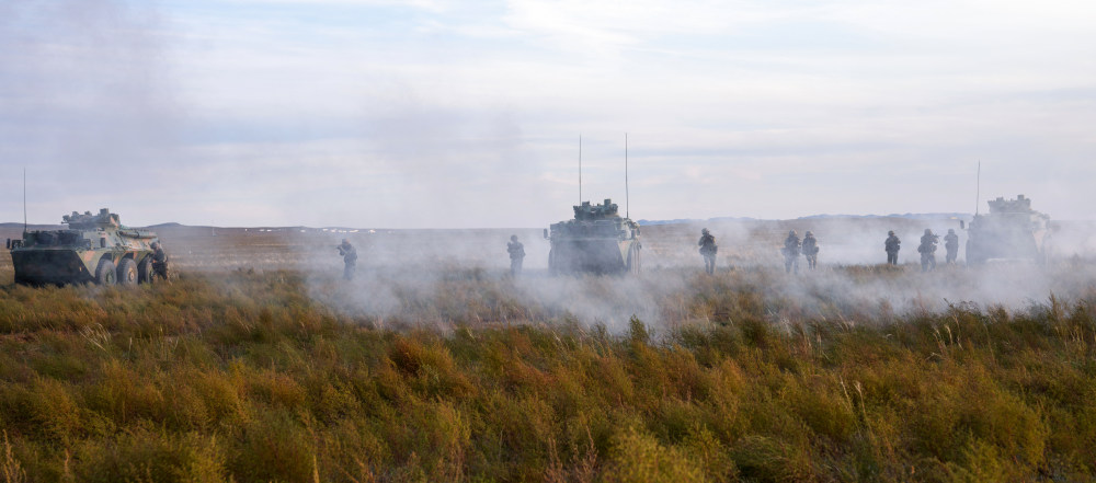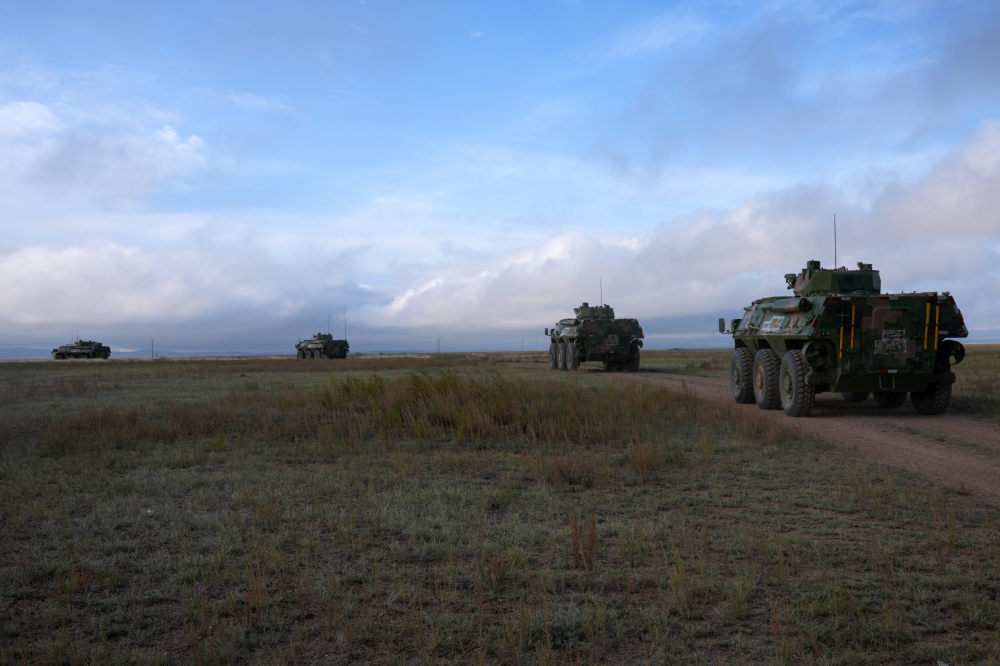 陆军某旅“刘老庄连”在实战化演练中,步战车编队行进(2025年9月16日摄)。新华社记者 张永进 摄