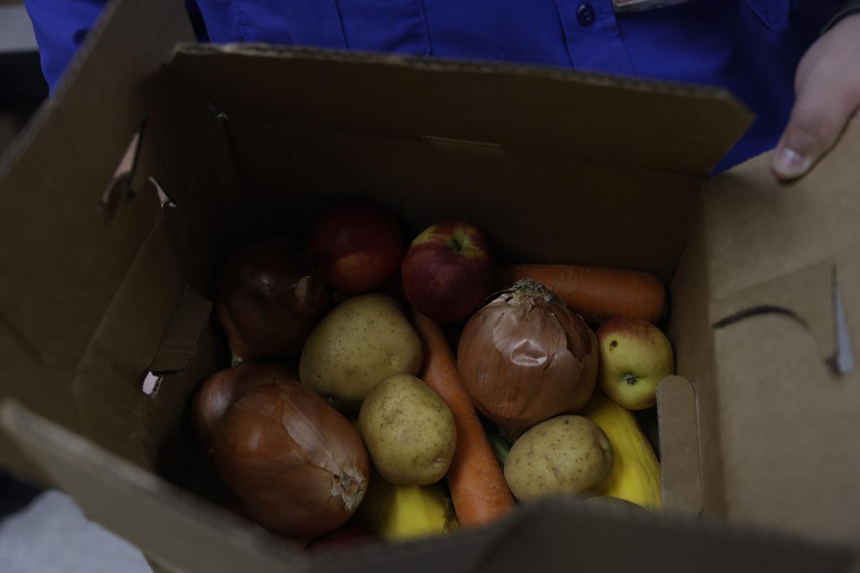 10月16日,在美国奥克兰国际机场,一名美国运输安全管理局的工作人员领取来自一家食物赈济中心的食品。新华社/美联