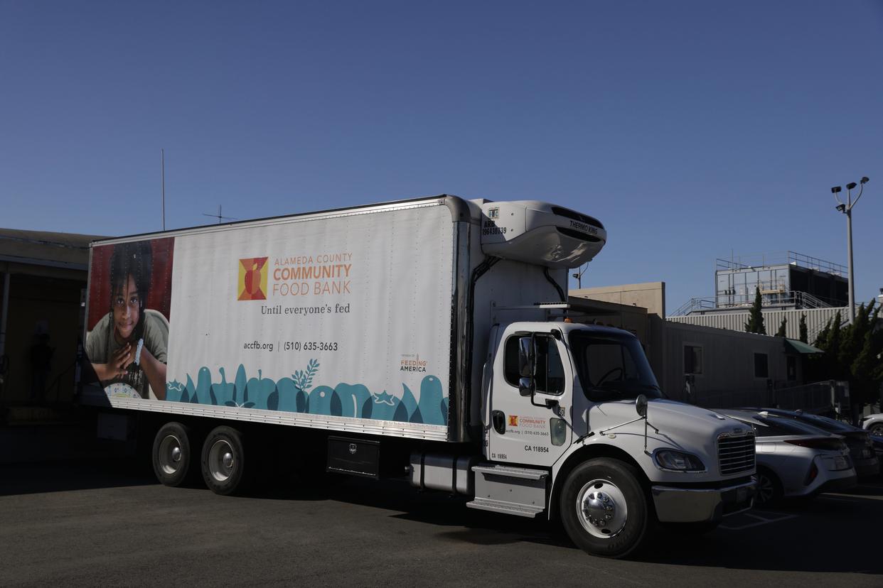 10月16日,一辆来自食物赈济中心的卡车抵达美国奥克兰国际机场,向受政府“停摆”影响的美国运输安全管理局工作人员分发物资。新华社/美联