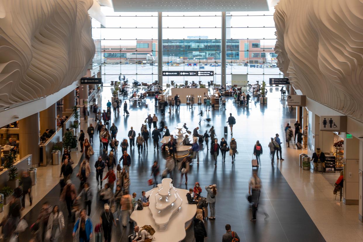 10月16日,旅客们走在美国盐湖城国际机场航站楼内。新华社/美联