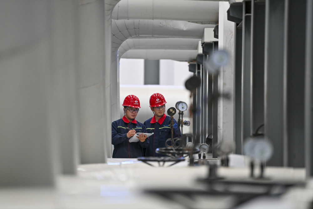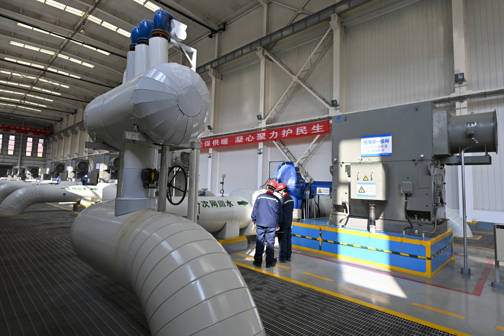 在太原市热力集团有限责任公司中继能源站,工作人员检查设备运行情况(10月19日摄)。新华社记者 杨晨光 摄