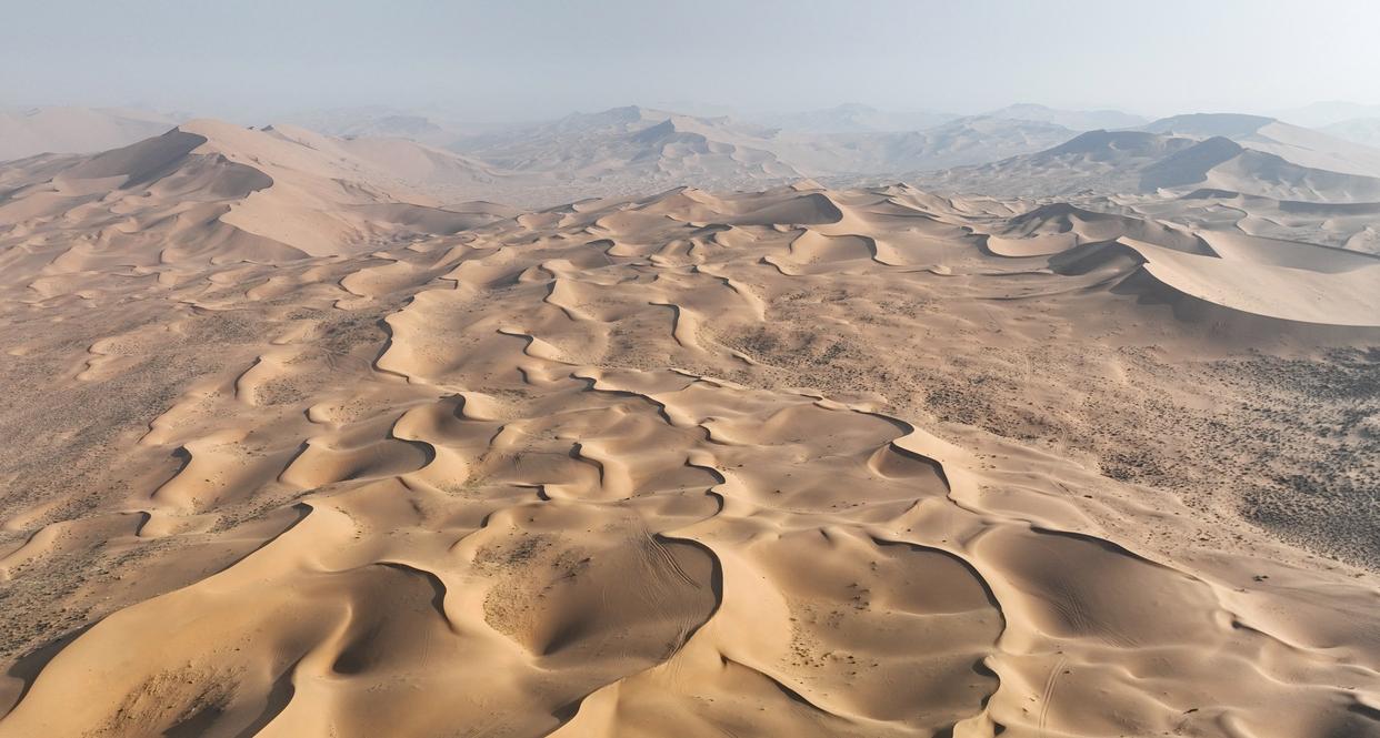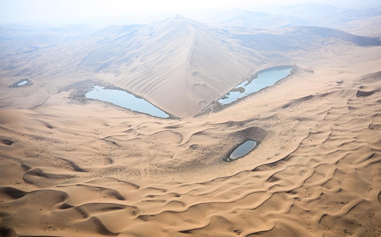 秋日,位于内蒙古阿拉善盟阿拉善右旗的世界遗产巴丹吉林沙漠—沙山湖泊群褪去炙热,绵延的沙丘披上柔和金光,与点缀其间的湖泊相映成趣,勾勒出一幅静谧而壮丽的自然画卷。