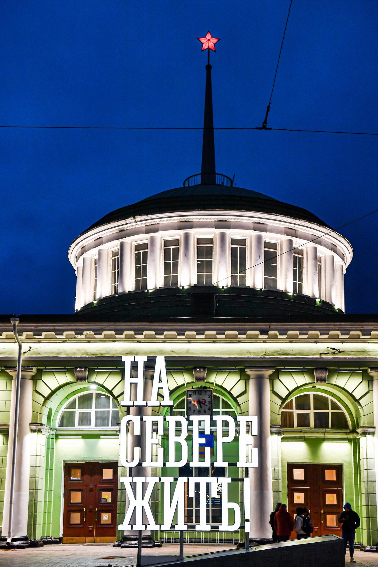 这是10月22日拍摄的俄罗斯摩尔曼斯克市火车站。该车站以其富有历史感的外观,成为当地的著名地标建筑。新华社记者 张超群 摄