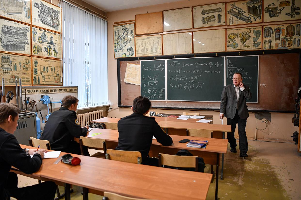 10月24日,一位老师在俄罗斯摩尔曼斯克北极大学为学生授课。摩尔曼斯克北极大学是俄罗斯联邦北极地区的科学教育中心,开设包括北方航道开发、矿产资源勘探、渔业、生物技术、数字化和环境安全等专业,目前有超过9000名在校学生。新华社记者 张超群 摄