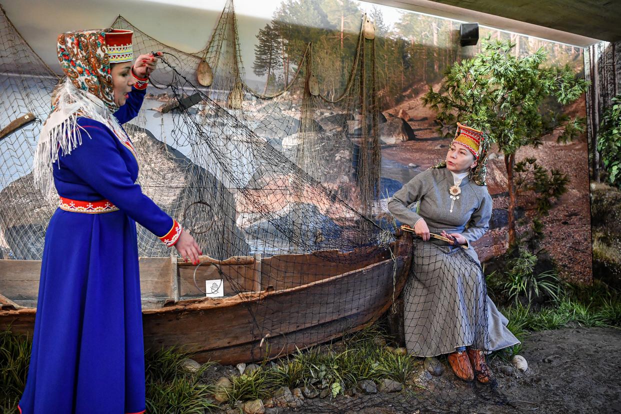 这是10月23日在俄罗斯摩尔曼斯克市博物馆展厅内拍摄的体现当地渔业历史文化的实景演绎。新华社记者 张超群 摄
