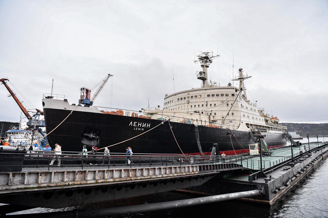 这是10月23日在俄罗斯摩尔曼斯克港拍摄的世界第一艘核动力破冰船“列宁号”。新华社记者 张超群 摄
