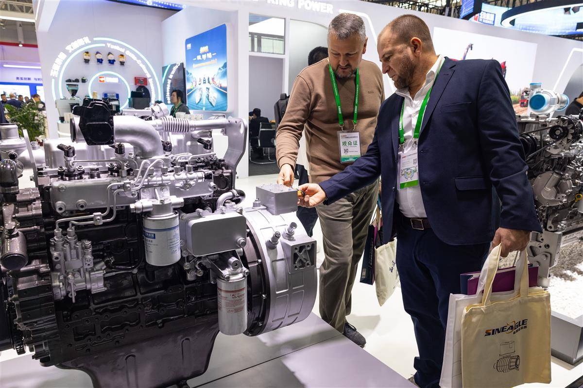 图为此次农机博览会也吸引不少国际客户前来洽谈合作。