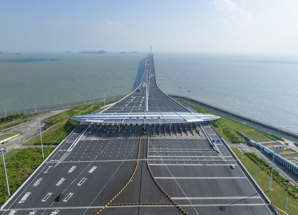 ↑港珠澳大桥(10月19日摄,无人机照片)。港珠澳大桥是全运会公路自行车项目途经地,一桥串联粤港澳三地。新华社记者 毛思倩 摄