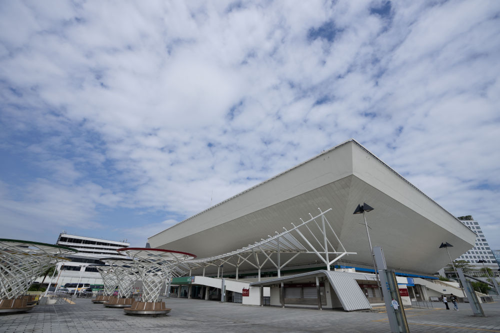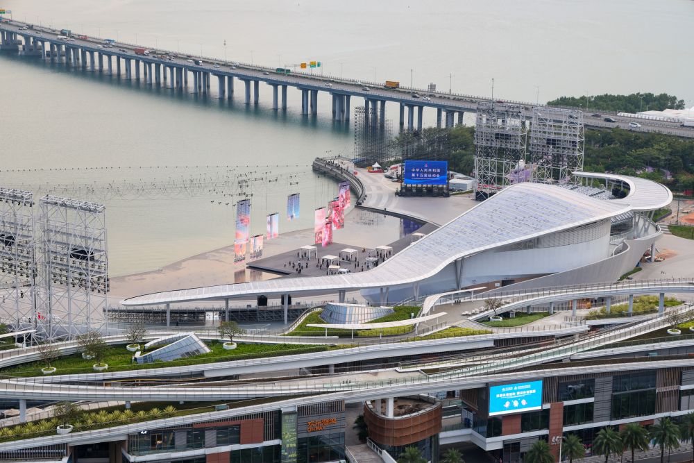 ↑深圳湾体育中心(10月19日摄,无人机照片)。全运会篮球女子22岁以下组、马拉松比赛在这里举行。其中,全运会马拉松比赛从深圳湾体育中心周边道路起跑,以深圳湾大桥为纽带,横跨深圳、香港两地,最后回到深圳湾体育中心。新华社记者 梁旭 摄
