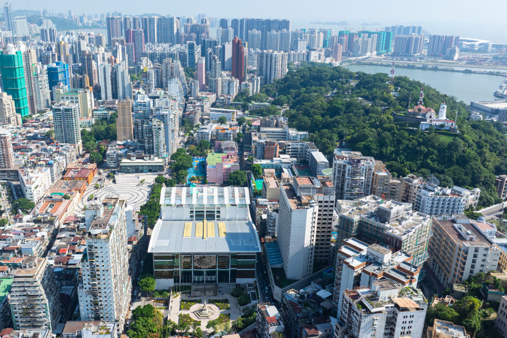 ↑澳门塔石体育馆(10月17日摄,无人机照片)。全运会5人篮球男子18岁以下组比赛在这里举行。新华社发(张金加摄)