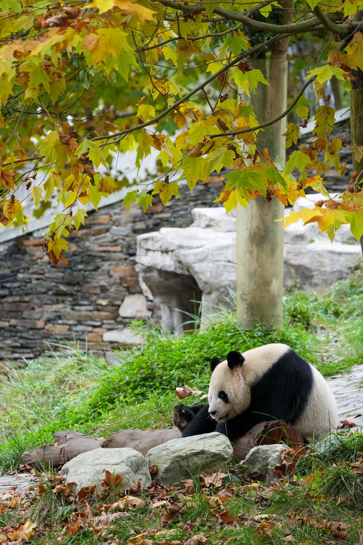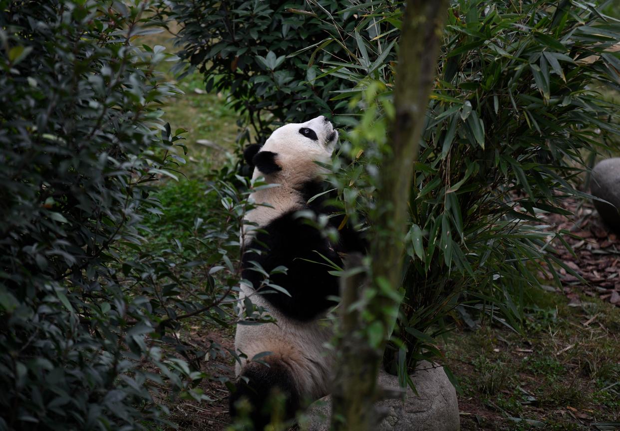 11月6日在中国大熊猫保护研究中心神树坪基地拍摄的大熊猫“森森”。新华社记者 胥冰洁 摄
