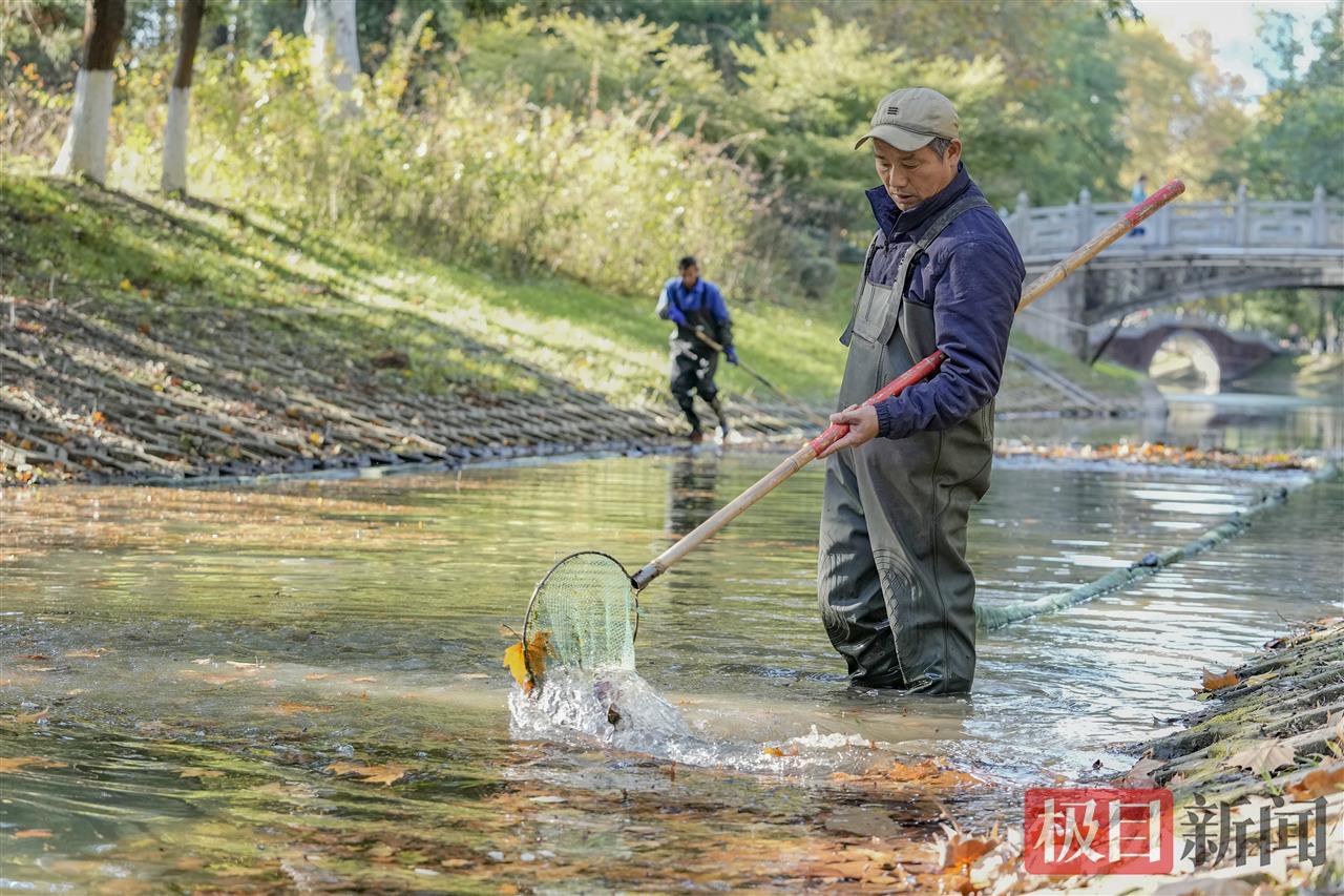 据公园管理人员称,“落叶不扫”是为了秋冬天的别样风景,但叶子落在水上就不是风景了,它们还会污染环境。为了防止落叶在水中变腐、污染环境,清洁人员不顾河水冰冷,数小时站在水中打捞、清理落叶,还了一河清水,保护了清洁的美景。