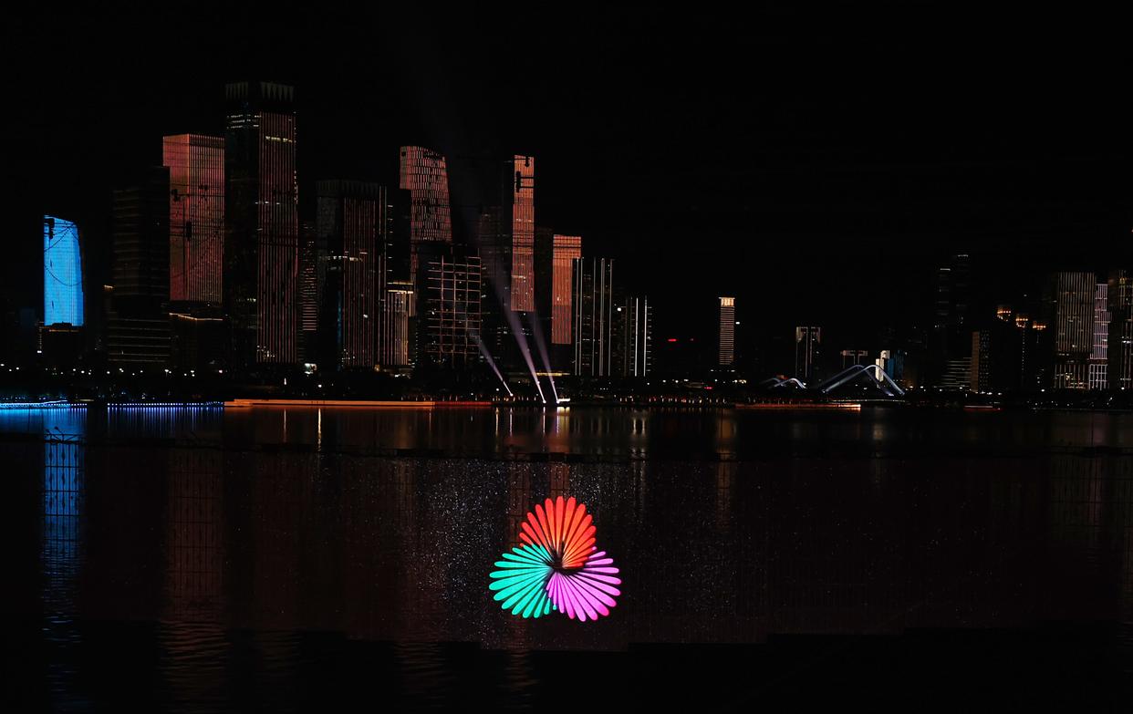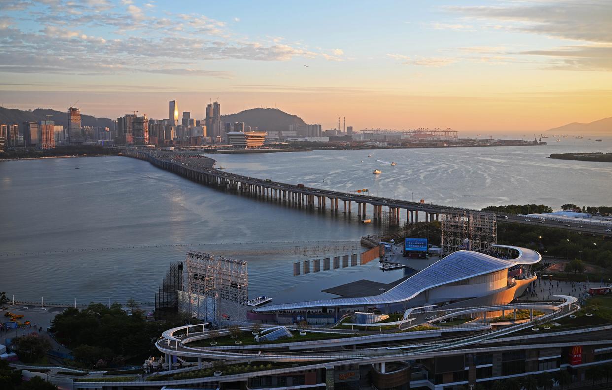 这是11月21日拍摄的广东深圳前海湾夜景。 当日,第十五届全国运动会闭幕式在广东深圳前海欢乐剧场举行。 新华社记者 郝源 摄