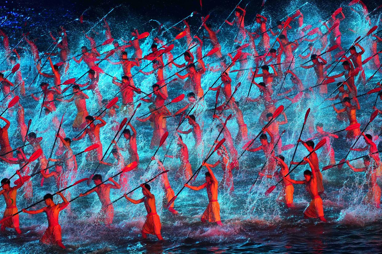 11月21日,演员在闭幕式现场表演。 当日,第十五届全国运动会闭幕式在广东深圳前海欢乐剧场举行。 新华社记者 陈思汗 摄