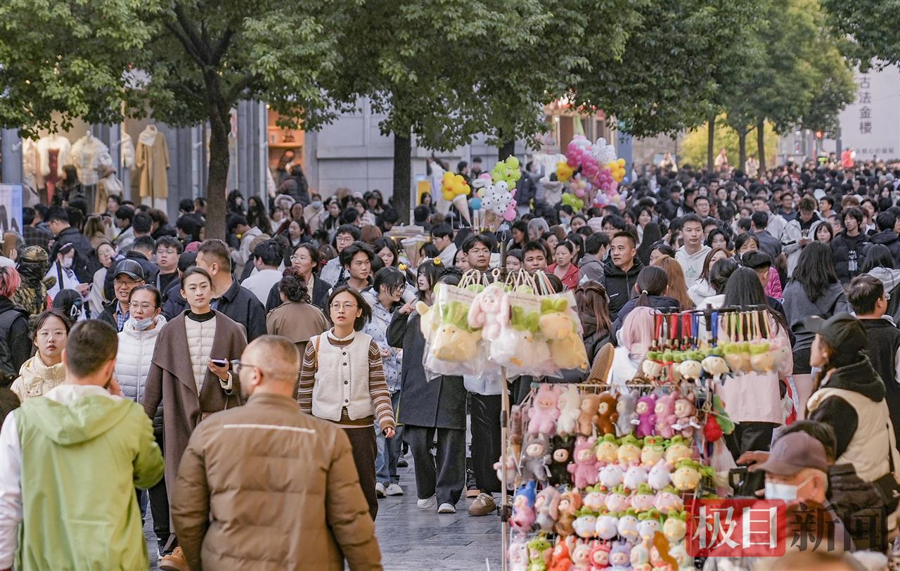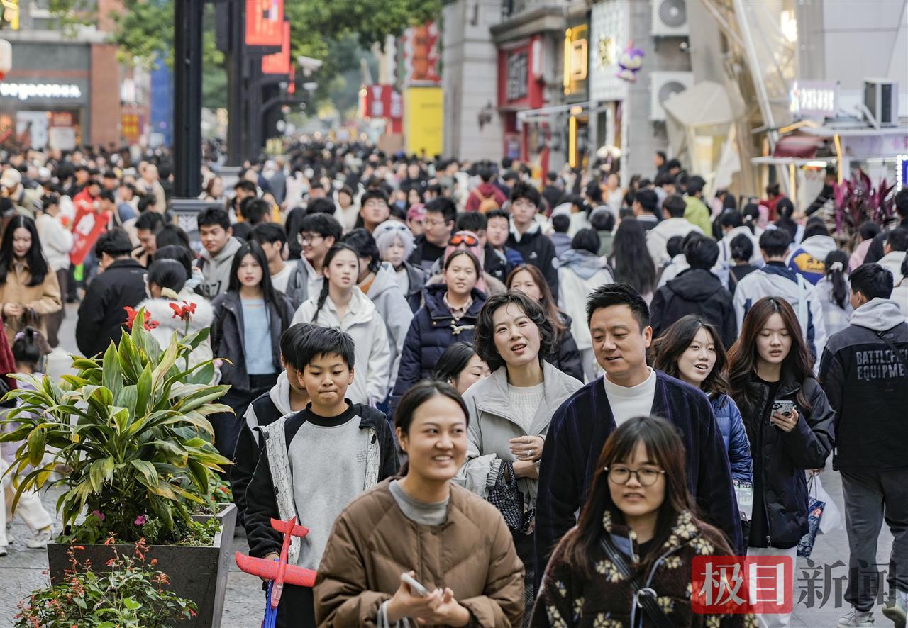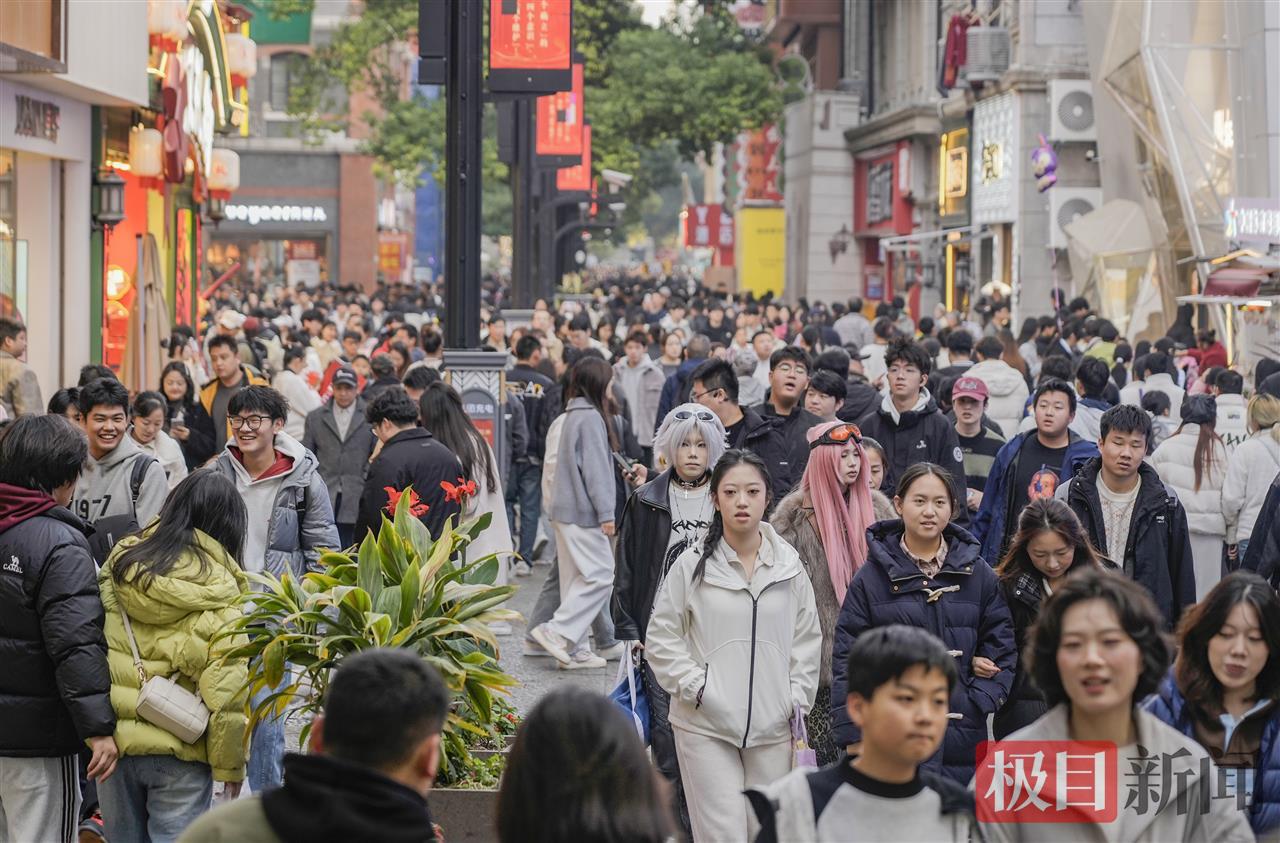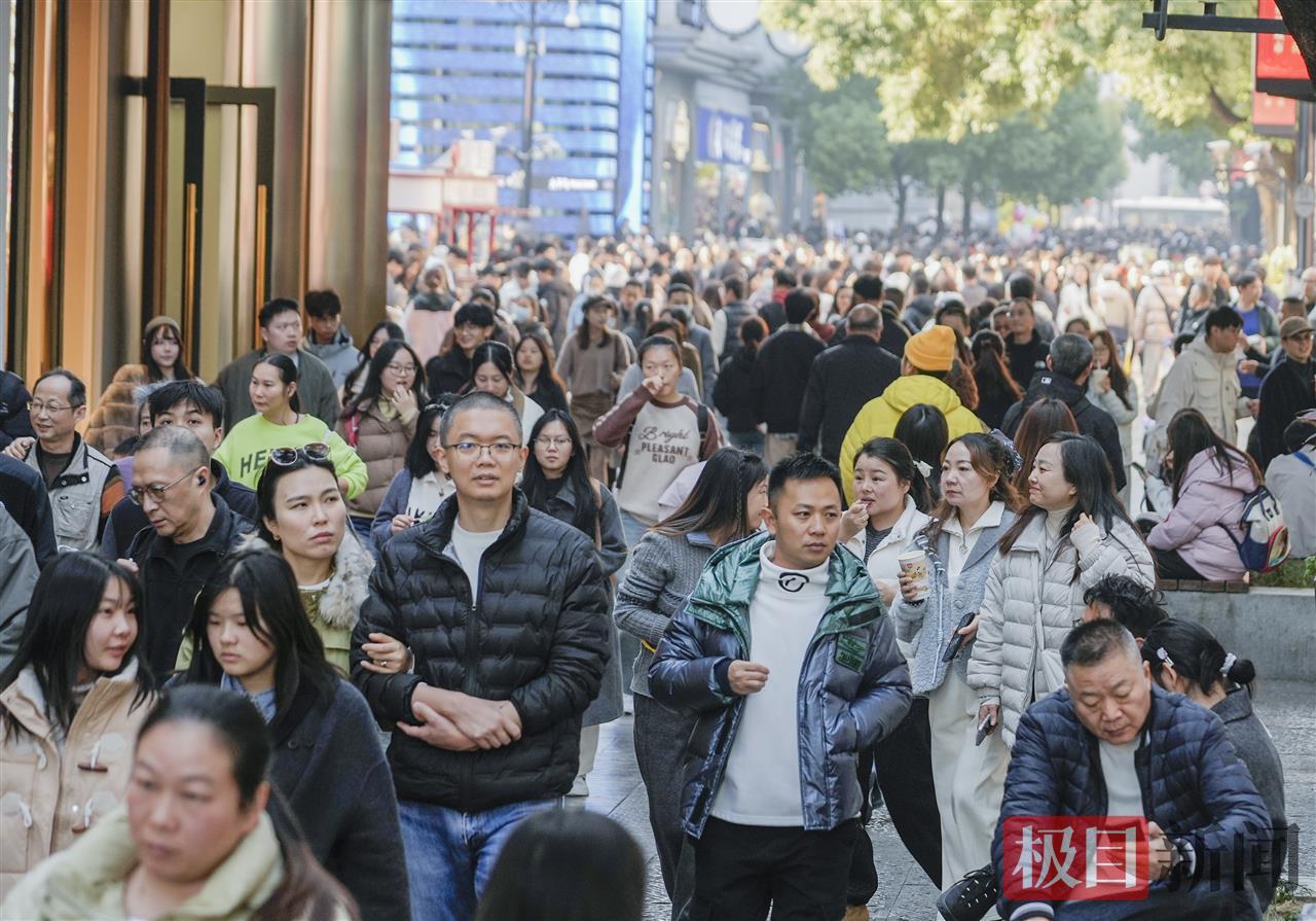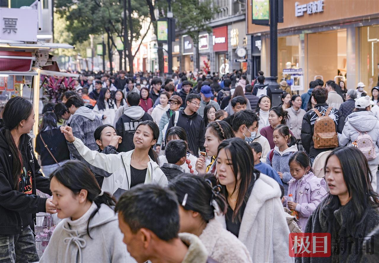 近期,武汉迎来连续晴好天气,市民们到户外活动的心情也高涨起来,周末,武汉热门景点人气旺盛。12月7日,汉口江汉路步行街上游客摩肩接踵,人山人海,整条步行街似乎被市民游客填满。