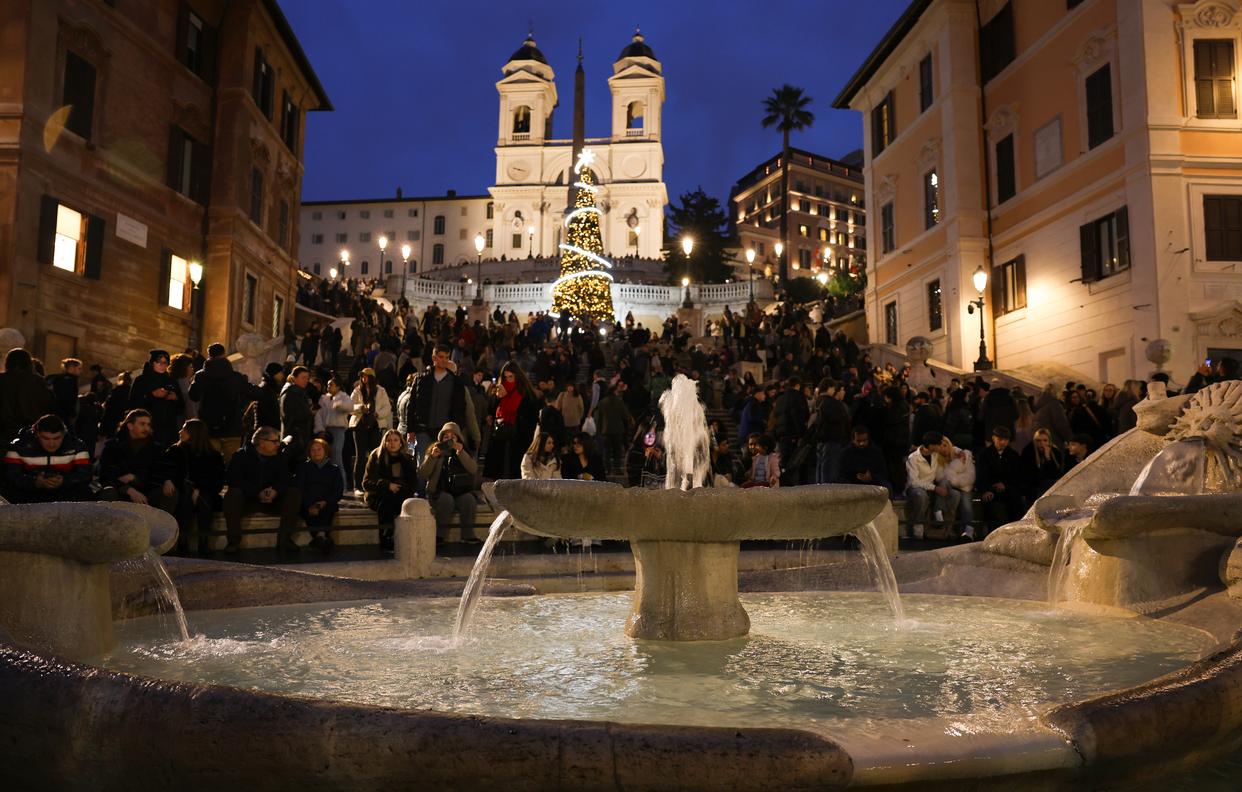 近日,意大利罗马的主要地标建筑和市中心街道点亮节日彩灯,为冬日增添缤纷色彩。