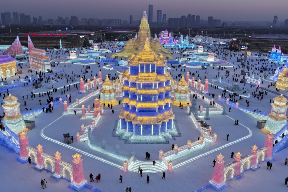 12月17日上午10时,第二十七届哈尔滨冰雪大世界正式开园迎客。园区占地面积达120万平方米,总用冰用雪量突破40万立方米,以历届之最的规模,打造一座冰天雪地的“童话世界”。