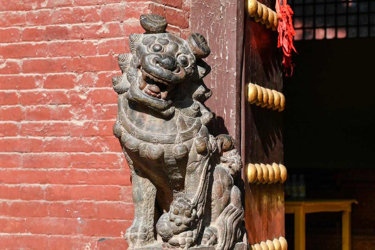 这是12月2日在山西省晋城市关帝庙拍摄的石狮子。