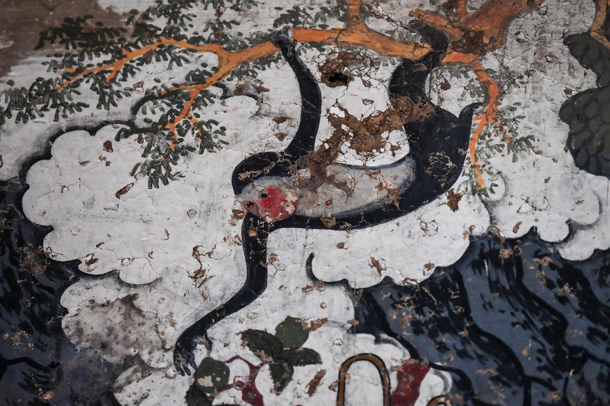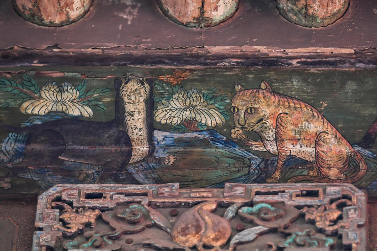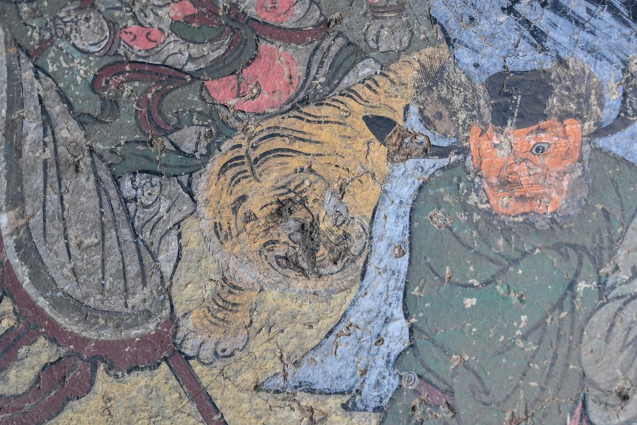 这是12月3日在山西省高平市仙翁庙拍摄的壁画中的虎。